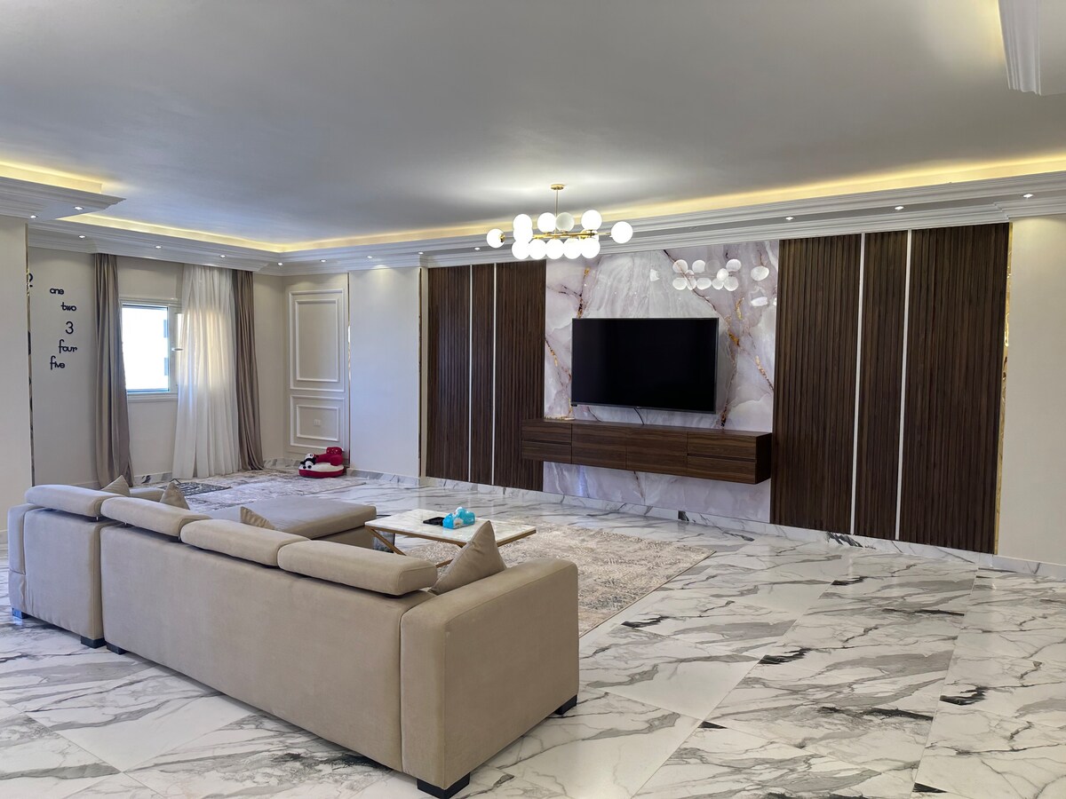 Disfruta de un apartamento soleado y acogedor en la ciudad del 6 de octubre, El Cairo, en una ubicación perfecta. El apartamento está bien iluminado y bien ventilado con una gran azotea verde. El departamento está recién renovado y amueblado con muebles muy cómodos y clásicos con baños súper limpios y cocina totalmente equipada.