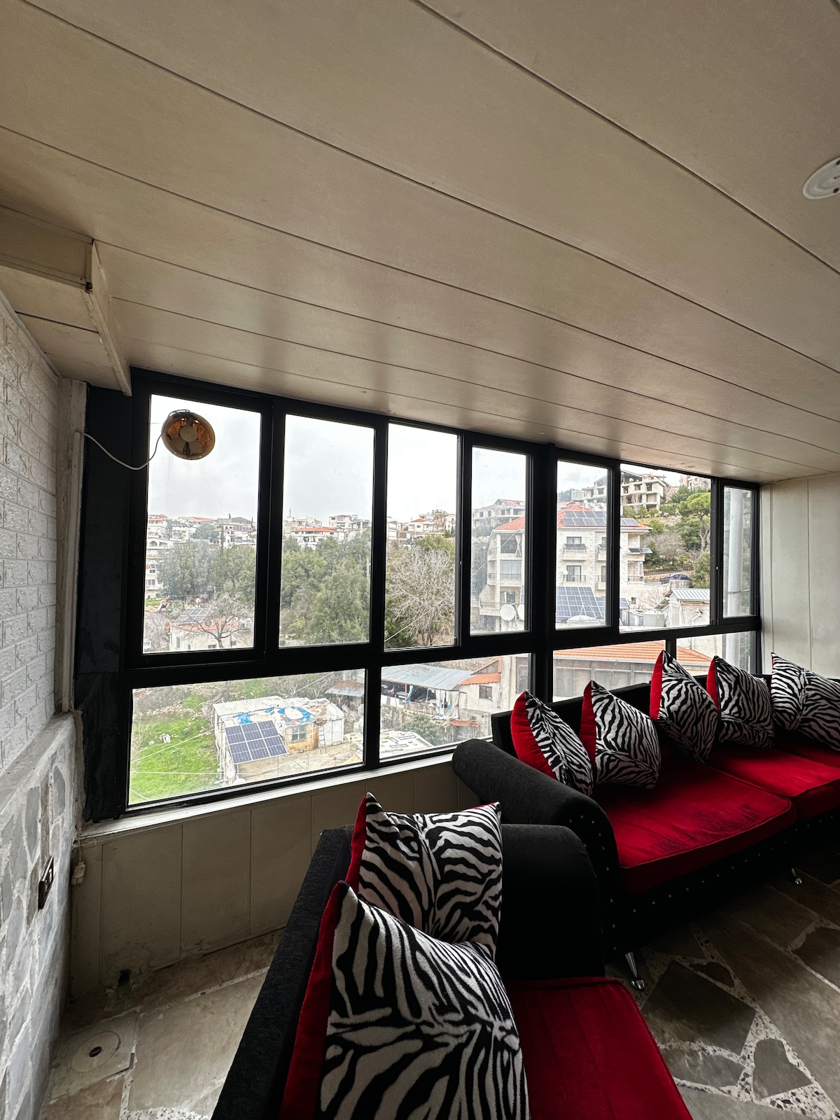 Increíble departamento con impresionantes vistas desde Jounieh a Dbayeh, rodeado de árboles y un pequeño jardín. Ubicado en Chemlan, a 20 minutos de Beirut y a 3 minutos de la Universidad de Balamand (Souk El Gharb). Wi-Fi y energía solar disponibles. Acogedora chimenea para las noches de invierno: madera disponible o trae la tuya. También ofrecemos recogida en el aeropuerto y excursiones turísticas a precios especiales para nuestros huéspedes.