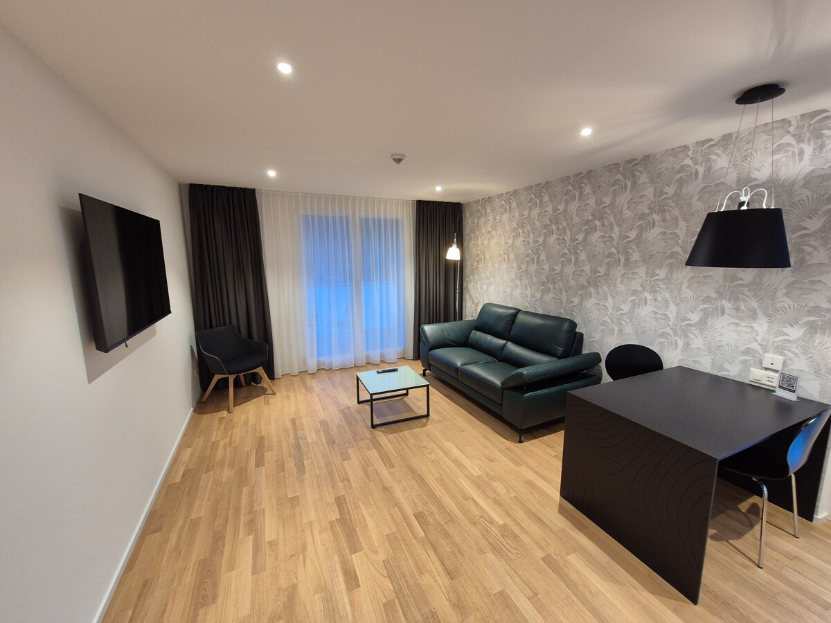 Wohnen auf Zeit - einziehen ohne zügeln, alles ist vorhanden – einfach unkompliziert! Modern wohnen im 2.5 Zimmer Apartment im neu erbauten Haus CENTRINO in Gränichen / Aarau-Süd. Schlaf- und Wohnzimmer, eigene Küche und Dusche. Komplett möbliert und ausgestattet, inkl. Flatscreen, W-Lan, Küchenutensilien, Bettzeug, Handtücher, usw. Profitieren sie von den attraktiven Wochen- und Monatsmieten. Optimal gelegen: Bahnhof, Coop, Migros, Post, mehrere Restaurants, Bank, usw. nur 2-5 Gehminuten.