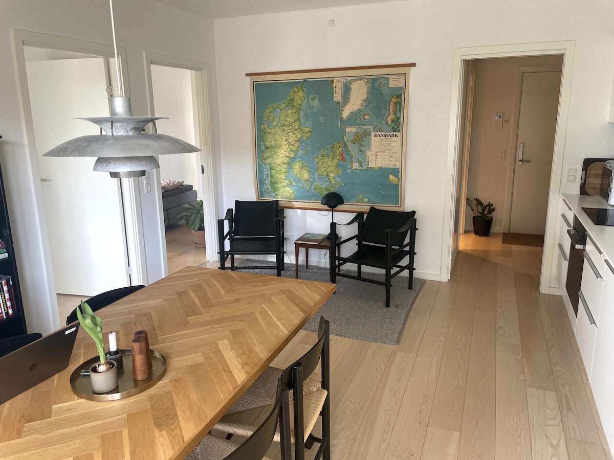 Departamento luminoso y espacioso en una ubicación perfecta. El departamento consta de sala de estar y dos dormitorios, cocina y un pequeño baño. También hay acceso a un patio compartido. La zona es muy acogedora y segura y ofrece todas las tiendas, cafeterías, vinotecas y restaurantes necesarios. ¡Jægergårdsgade, que está a solo unos metros del departamento, es una calle muy acogedora! Los autobuses y trenes están muy cerca del departamento. Es adecuado para parejas y amigos, sin grupos de fiestas.