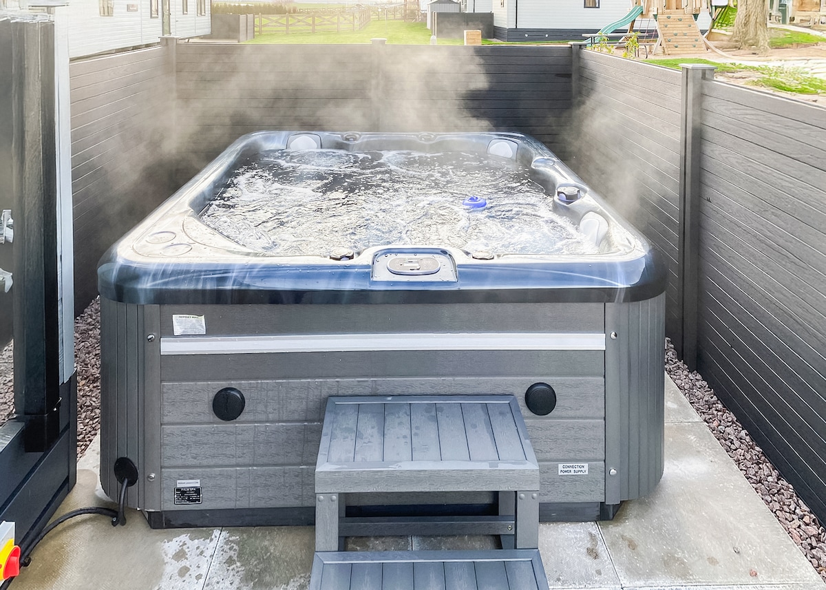 Jacuzzi relajante y tranquilo en el lodge, vistas hermosas