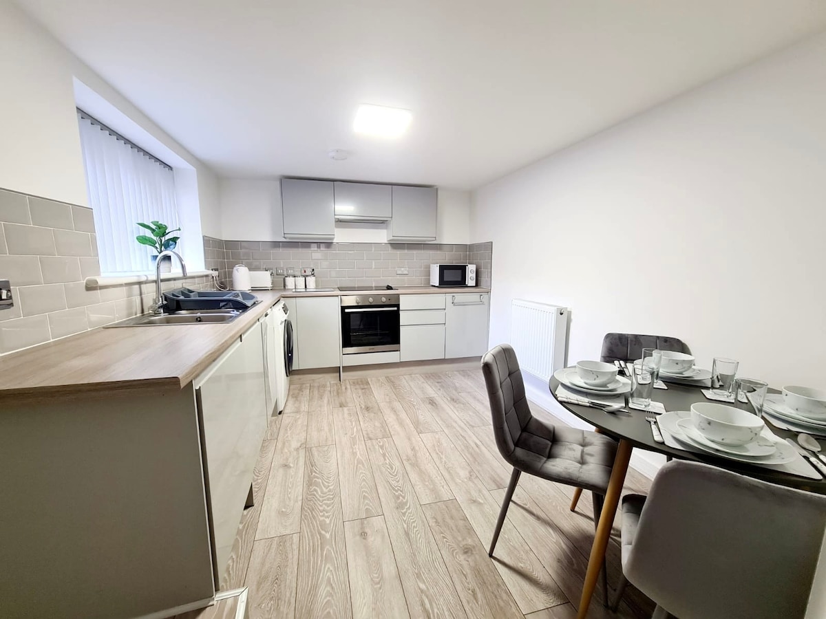 BOOK TODAY with ★Dwellcome Home Ltd★ Almost 100% direct booked so not many reviews here. ✪ Modern spacious open plan 1st-floor apartment ✪ 2 king beds ✪ Linen included ✪ Quiet west end residential city centre area ✪ Free allocated car parking ✪ Fully equipped kitchen lounge diner ✪ Family bathroom ✪ 100Mb/s broadband ✪ Netflix TV ✪ Well furnished ✪ AC76865F. ★Find Dwellcome Home for BEST price, long term discounts & service direct for this and our other 1, 2, 3, 4, 5 & 8 bedroom places★