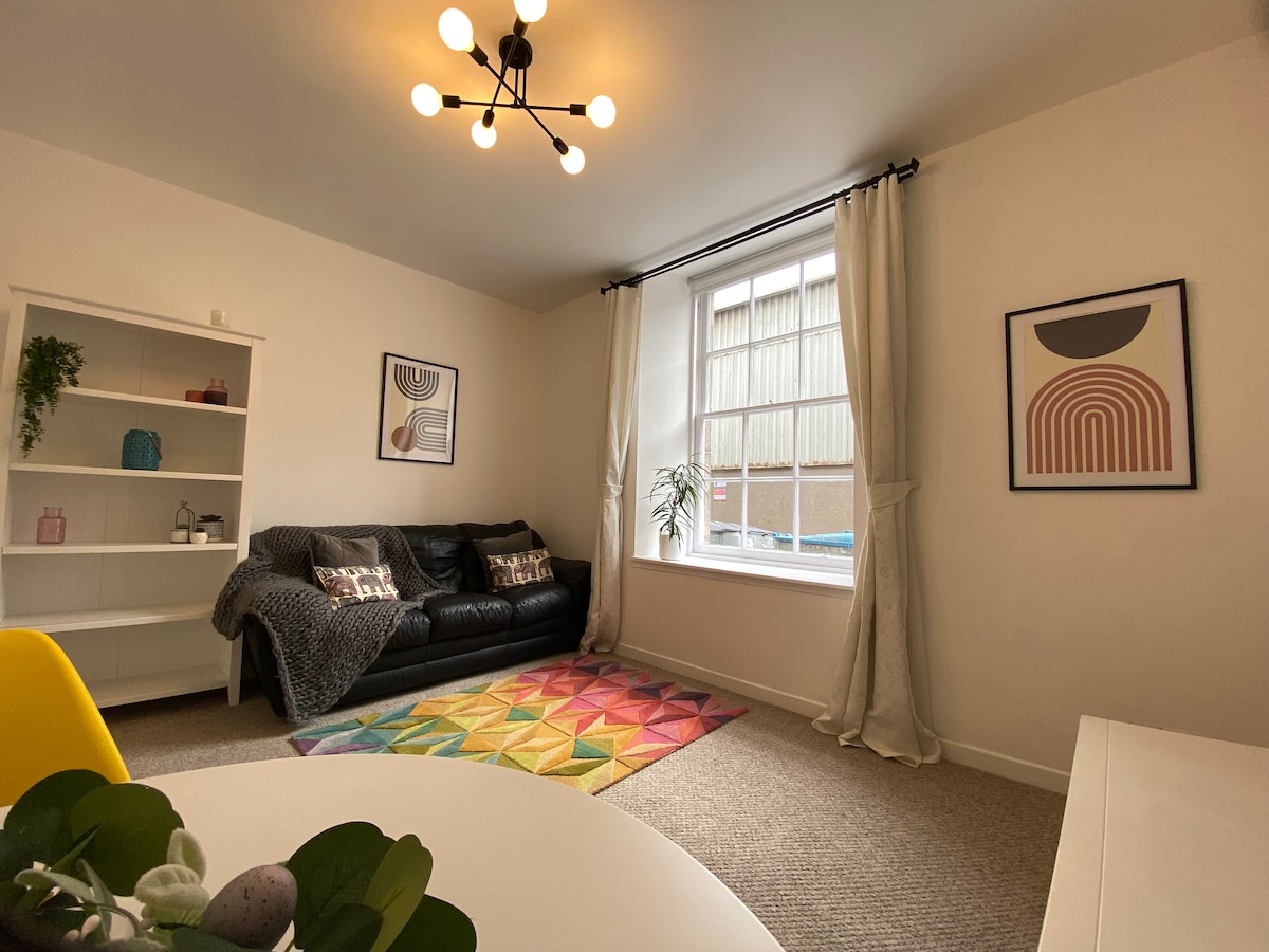 Un refugio moderno dentro de un edificio histórico de granito. Ubicada en Regent Quay, Aberdeen, nuestra propiedad ofrece la mezcla perfecta de comodidad contemporánea y encanto atemporal. Situado junto al puerto y a pocos pasos de Union Street, la estación de tren de Aberdeen y el centro comercial Union Square. Una sala luminosa y espaciosa con cómodos asientos y un televisor de pantalla plana. Cocina moderna que incluye nevera/congelador, placa de cocción, horno y té y café. Estacionamiento asignado en la parte trasera de la propiedad.