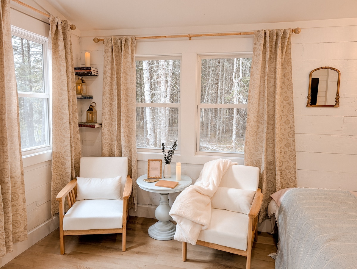 Find peace and relaxation at our tranquil riverside retreat. Guests are invited to enjoy breathtaking views of the Miramichi River from hanging chairs. Enjoy complimentary coffee and tea while watching the sunrise from your large private deck. Fall asleep to the sounds of nature in plush bamboo bedding. Our Chalet is located just 25 minutes from the city of Miramichi and minutes from Blackville. With private access to the Miramichi River each season offers new experiences for guests to enjoy!