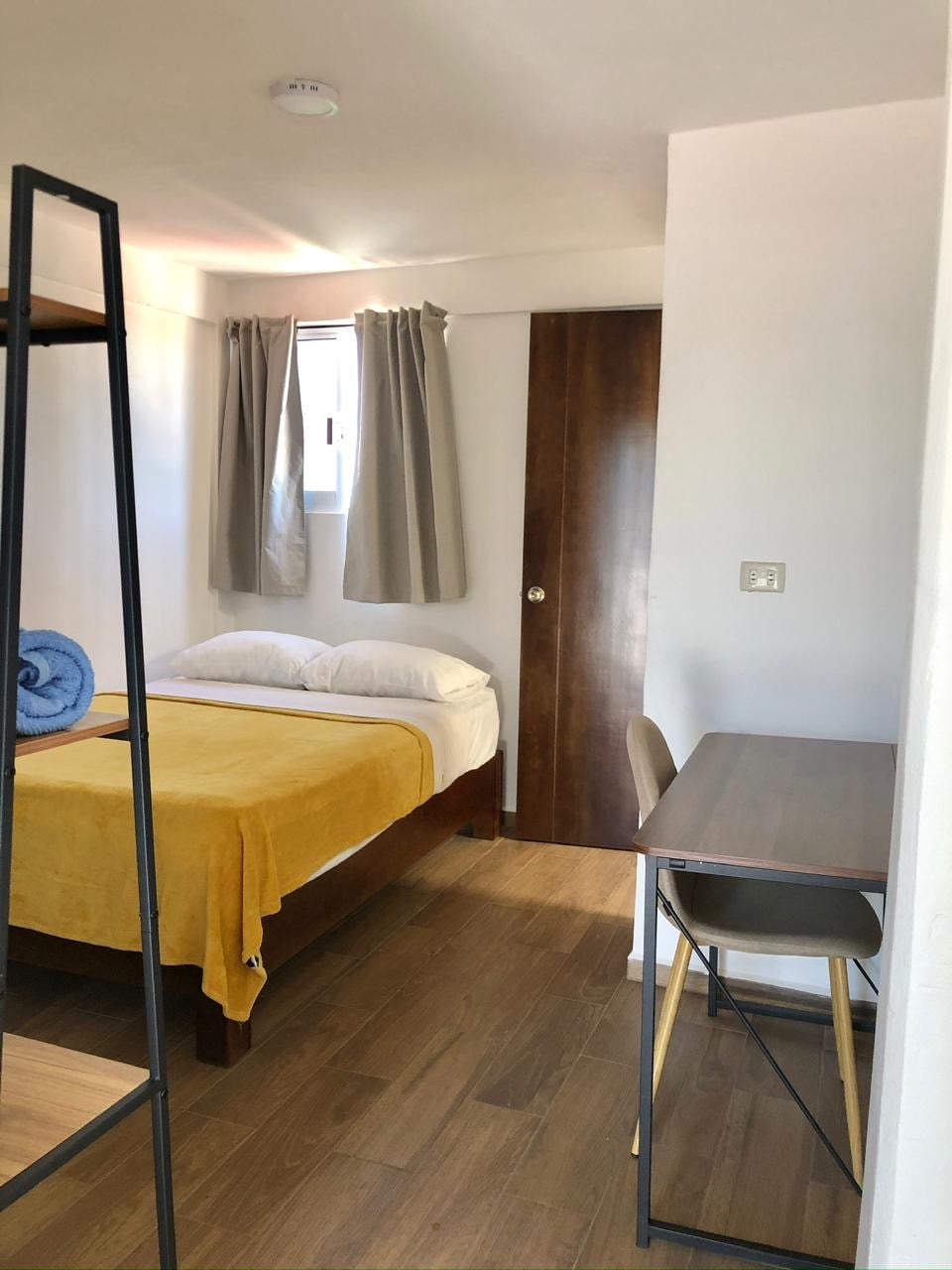 Te ofrecemos una experiencia cómoda en una habitación privada ubicada en la tercera planta de una casa. La cama matrimonial asegura un descanso placentero, mientras que el baño privado, con agua caliente proporcionada por un eficiente calentador solar, añade comodidad y privacidad. La habitación cuenta con wifi para mantenerte conectado, una terraza para relajarte al aire libre, así también una pequeña cocineta para tus necesidades culinarias. Todo esto en un entorno acogedor y conveniente.