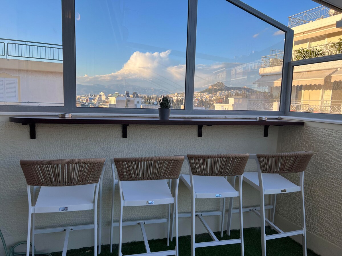 Estudio soleado en la planta superior con excelentes vistas de Atenas