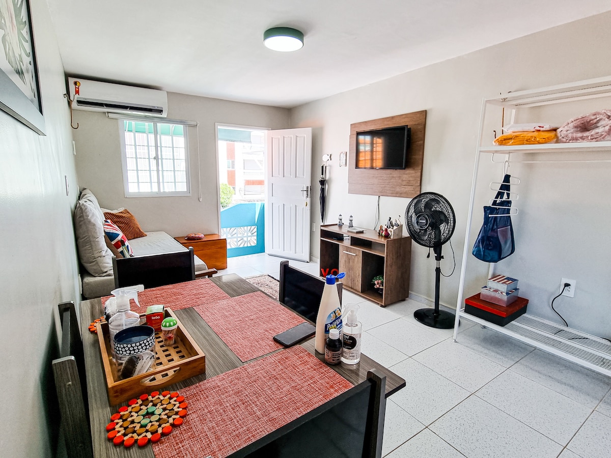 Apartamento amueblado para temporada para aquellos que quieren practicidad y comodidad en casa. Se encuentra entre dos avenidas que permiten un fácil acceso al transporte público. El apartamento es totalmente individual para aquellos que les gusta la privacidad. Cuenta con vajilla y kit de limpieza básica, acceso a internet y TV. Cocina (cocina eléctrica (1 hornilla), horno eléctrico, minibar, procesador de alimentos con licuadora y sandwichera). El apartamento no tiene derecho a estacionamiento.