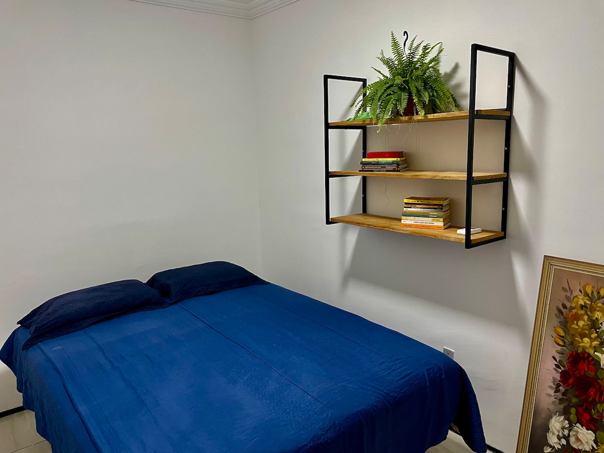 Apartamento amueblado para temporada para aquellos que quieren practicidad y comodidad en casa. Se encuentra entre dos avenidas que permiten un fácil acceso al transporte público. El apartamento es totalmente individual para aquellos que les gusta la privacidad. Cuenta con vajilla y kit de limpieza básica, acceso a internet y TV. Cocina (cocina eléctrica (1 hornilla), horno eléctrico, minibar, procesador de alimentos con licuadora y sandwichera). El apartamento no tiene derecho a estacionamiento.