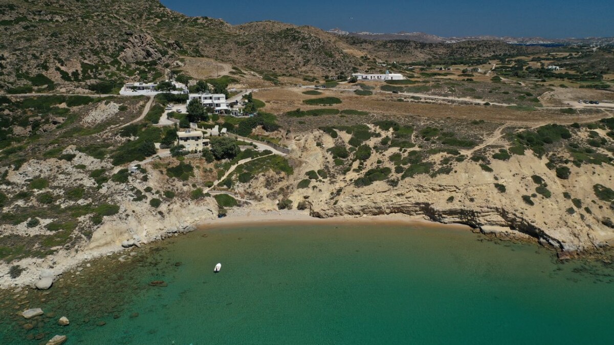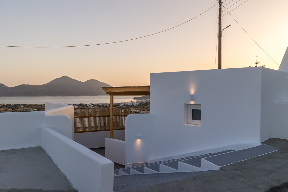 The two accommodation buildings, are located in a quiet area, just over Agios Sostis Beach, providing an exclusive view of the Provatas' bay and of the Aegean Sea. These Southern beaches, away from the strong summer wind “Meltemi”, with velvet sand.