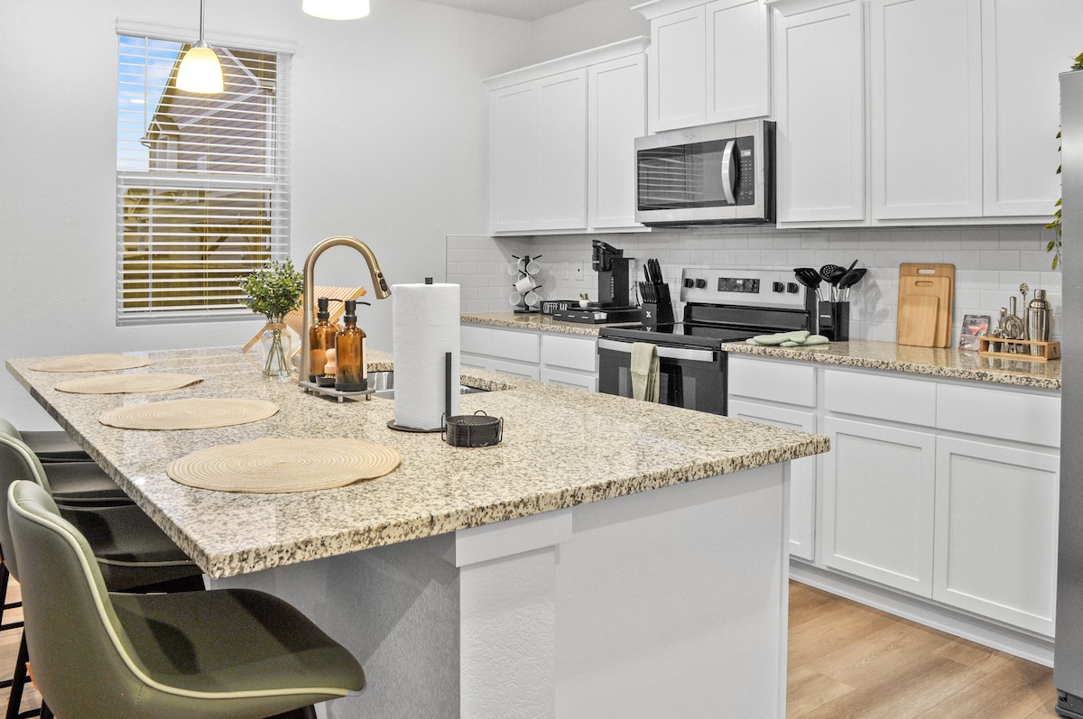 Céntrico y accesible con vistas a las Montañas Rocosas. Relájate y recarga energías en el jacuzzi privado y el patio trasero. Disfruta de una casa de nueva construcción con muebles y ropa de cama sencillos y lujosos. Cocina bien equipada y un gran patio trasero. Internet de alta velocidad de hasta 800 mbps, televisor inteligente y una zona para trabajar. Cuatro autopistas principales (I-25, I-270, I-76, US-36) a 5 minutos en auto. A 10 minutos de RiNo, a 15 minutos del centro de la ciudad y a 20 minutos del aeropuerto de DEN. A dos manzanas de la estación de tren ligero Commerce City & 72nd Ave.