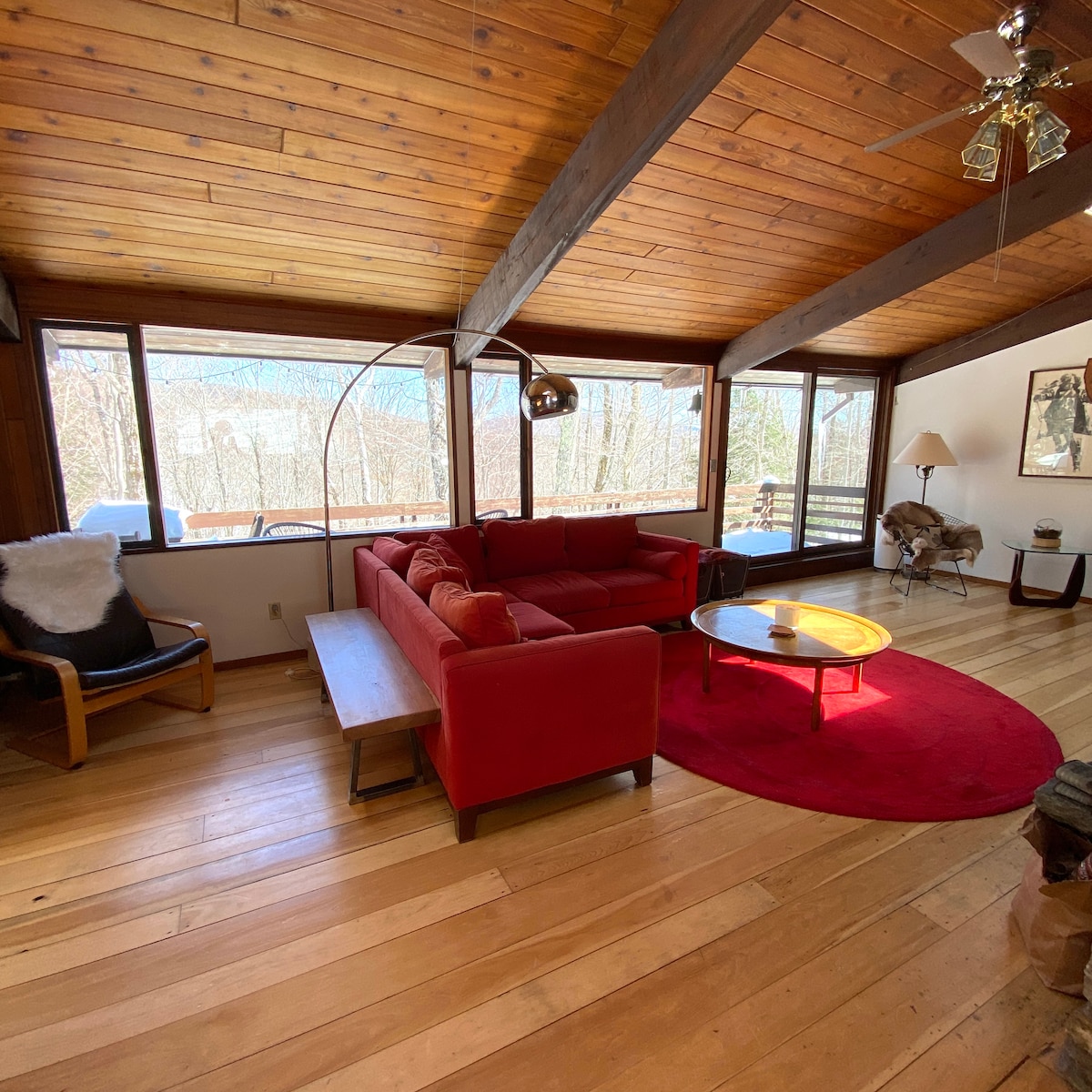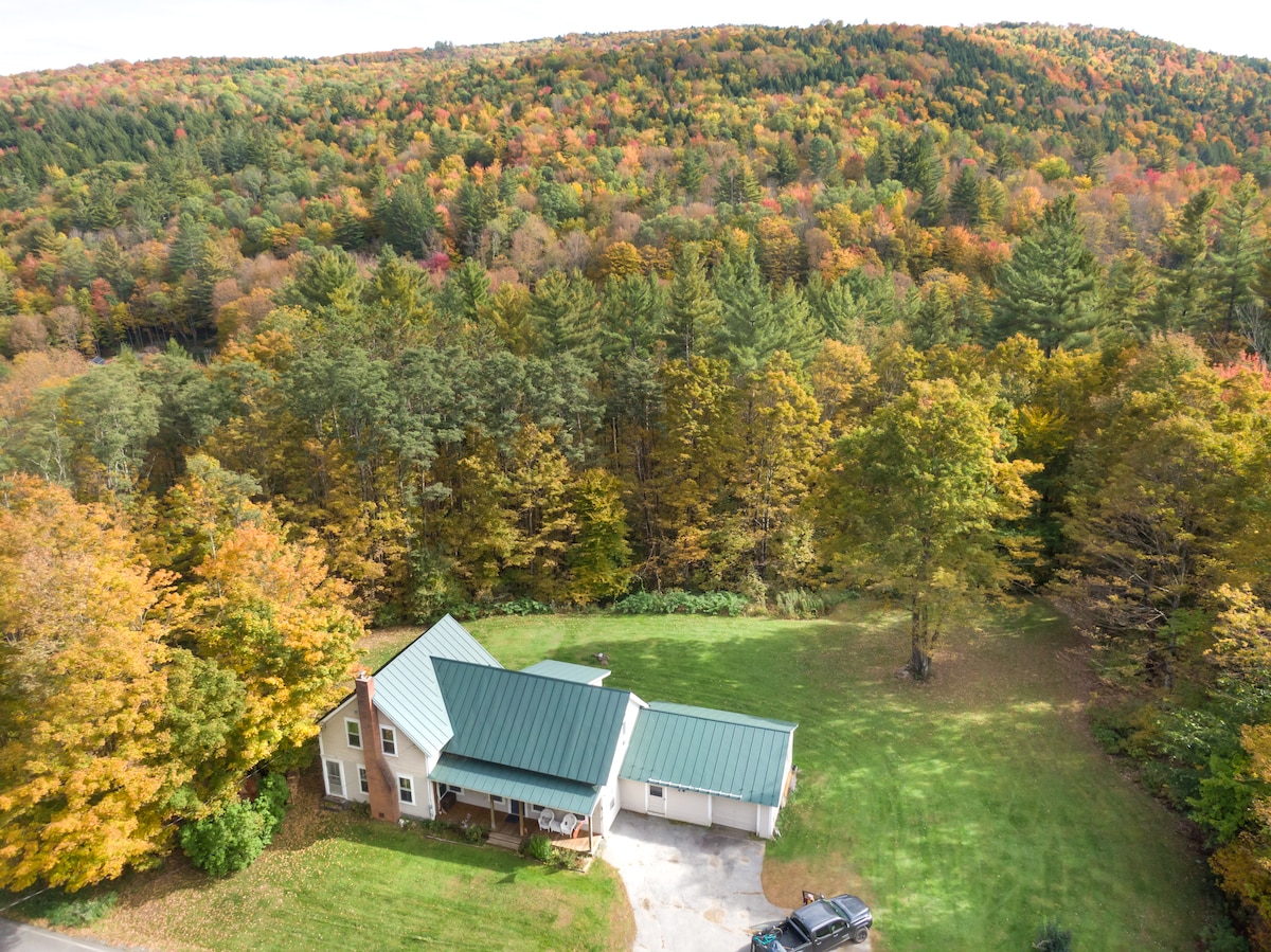 Lujoso estilo bohemio con vistas a una de las vistas más épicas de las montañas Verdes. Rodeado de 25 000 acres de bosque nacional y completamente aislado, pero a poca distancia en coche de varias ciudades. Casa espaciosa, inmaculada y moderna con vigas rústicas y preciosos suelos de madera. Cada uno de los tres dormitorios (y baños) tiene una vista maravillosa. El dormitorio principal es enorme y tiene amplias vistas al Battell Wilderness y al Long Trail. La parte delantera de la casa es una pared de ventanas con vistas a un hermoso estanque y al Bosque Nacional de las Montañas Verdes. Sin contaminación lumínica. Sin ruido, excepto por las ranas arbóreas y el sonido del río White corriendo sobre las rocas muy por debajo en el hueco. Vale la pena mencionar que Breadloaf Mountain Cottage fue un regalo por el que estoy agradecido. Todavía no puedo creer que tenga tanta suerte de poder disfrutarla con frecuencia. Por favor, comprende que esas vistas panorámicas y épicas que ves a tu alrededor cuando estás allí, tienen un precio. Estar encaramado en la cima de una montaña en el desierto tiene beneficios obvios, pero debido a los cambios frecuentes del clima, el acceso y los servicios públicos a veces son un poco más complicados que algo en la ciudad. Por favor, prepárate para ser paciente con el clima y el wifi. Si bien mi internet es tan bueno como en cualquier lugar de Vermont, es una red rural y es probable que sea más peculiar que los servicios públicos urbanos o suburbanos. Tengo un servicio de 20 Mbps. Breadloaf Mountain Cottage se encuentra en la parte superior de una cresta que corre paralela a la pintoresca Ruta 100. Se encuentra a unos 1600 pies sobre el nivel del mar. Aunque está completamente aislada, está a solo 1,3 millas de la tienda Granville y a solo unos minutos más de Hancock, Rochester y Warren. ¡Podrías pasar semanas explorando las oportunidades de senderismo, ciclismo, natación y pesca desde la propiedad! Breadloaf Mountain Cottage se encuentra en Forest Road 55, justo al lado de la pintoresca Ruta 100. Si bien es de fácil acceso durante todo el año, un vehículo 4X4 o AWD es muy recomendable en nieve y barro. Los neumáticos de calidad AT o para nieve son imprescindibles en invierno. Esto es así en general en Vermont. Ven preparado.