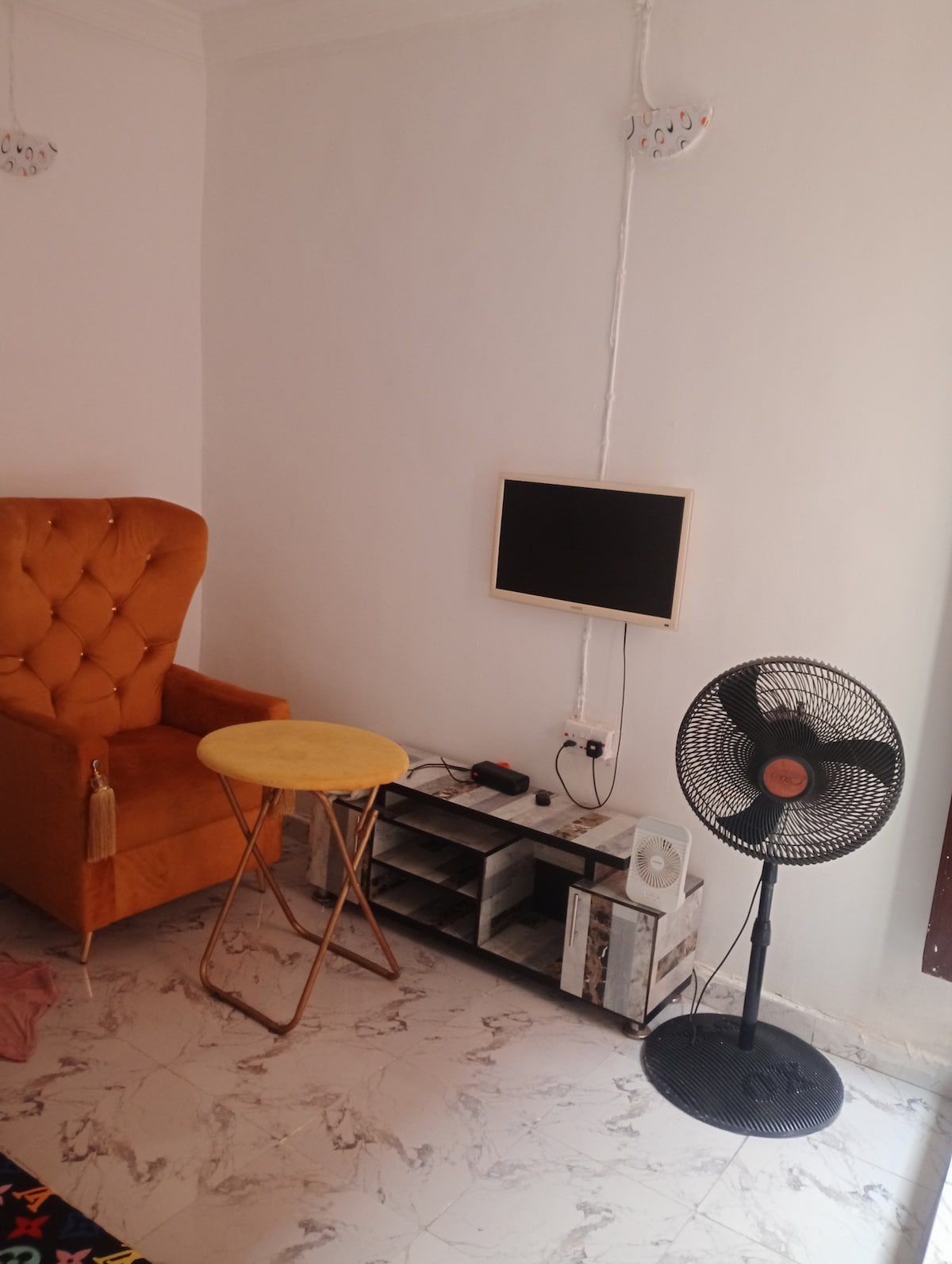 Un apartamento privado independiente de 1 dormitorio con una sala de estar ubicado en Femi Olanrewaju Street, en la salida de Ajasa Command Road. La calle tiene muchas tiendas. UBER/TAXIFY listo. La habitación viene con aire acondicionado. WIFI disponible. La electricidad es generada por NEPA, inversor y generador (el costo del generador está cubierto por los huéspedes). TV de 32 pulgadas con GOTV. Seguridad 24/7. Tenga en cuenta que esta propiedad ahora viene con Internet de fibra óptica súper rápido - 50bps Hay una cocina. (Por favor, reserva para el número específico de huéspedes que se alojan). Gracias.