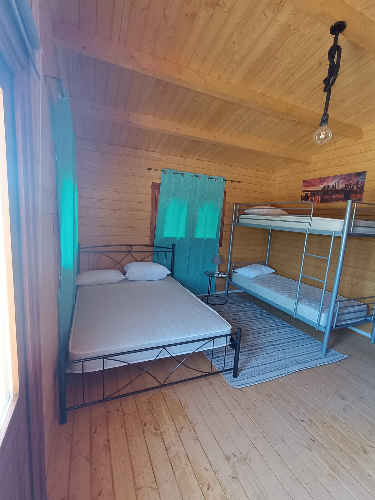 En este alojamiento tranquilo, puede relajarse en familia y disfrutar de unas vacaciones agradables. Nuestro edificio de madera se encuentra en el jardín de una antigua fábrica de aceite dentro de un jardín de 3 acres, en la parte trasera de este antiguo edificio, en una bahía con un complejo a pie de mar. Tiene un jardín de aproximadamente 150 metros cuadrados cubierto de césped con sus propios naranjos y mandarinos. Tiene aire acondicionado split para calefacción y refrigeración. Tiene vallas que rodean el jardín. Nuestra casa tiene capacidad para 4 personas.