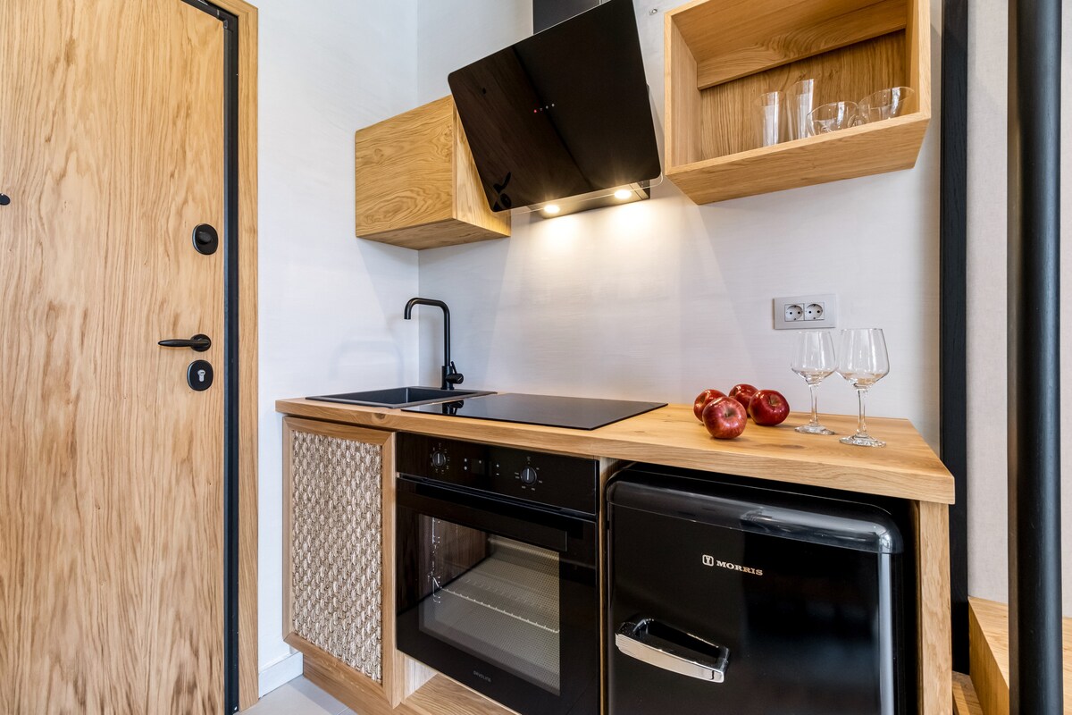 Nuestra casa de madera ha sido construida con una sola cosa en mente. Tranquilidad y paz. Aquí tendrás la oportunidad de relajarte y disfrutar de la naturaleza. La casa tiene una cocina totalmente equipada. Una nevera de tamaño completo, horno, microondas y cafetera espresso. El baño es amplio y ofrece una ducha de efecto lluvia. El dormitorio tiene un ático con una cama individual, una cama doble, un armario y un pequeño escritorio. La zona principal, el salón, tiene un cómodo sofá de cuatro plazas, un televisor y una estufa de leña. Cargador de vehículos eléctricos disponible.