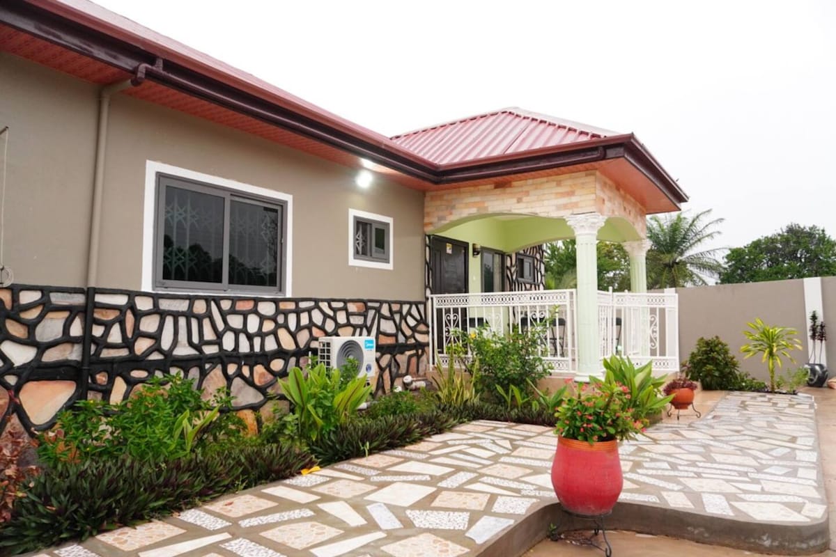 Se encuentra en el corazón de Dzoanti, un pequeño pueblo en Kpando, en la región de Volta. Los huéspedes pueden vivir entre los indígenes y aprender de ellos, pero disfrutando de una estancia cómoda. Es un (1) dormitorio en suite con amplio salón con TV de entrada privada, cine en casa, cama tamaño king, aire acondicionado,