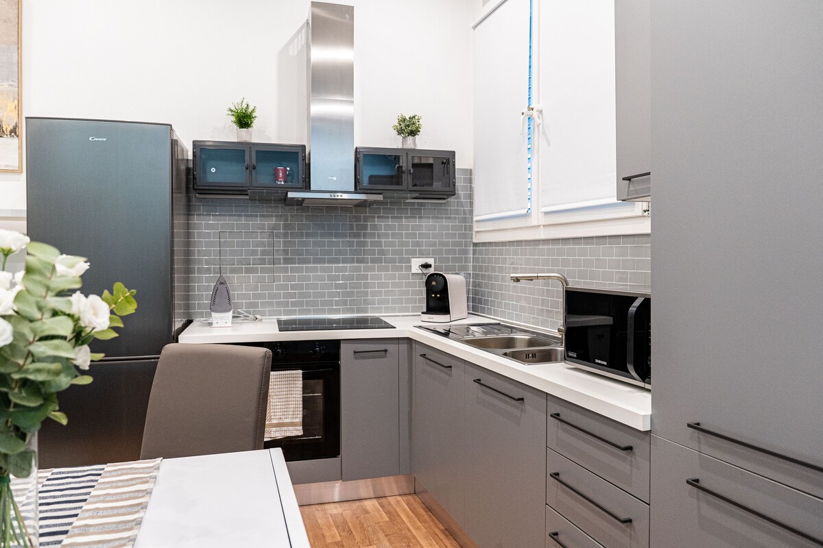 Il bilocale può ospitare comodamente due persone in un ambiente curato e funzionale. All’ingresso si trova la cucina, moderna ed accessoriata (induzione, macchina del caffè, microonde, frigorifero e lavastoviglie). Il soggiorno è lo spazio ideale per rilassarsi: un comodo divano, una smart TV da 50" (accesso a Netflix) e un tavolo perfetto per pranzare o lavorare al PC. Il corridoio porta alla spaziosa camera da letto (con smart TV 40") ed al bagno (dotato di phon e lavasciuga). Centralissimo!