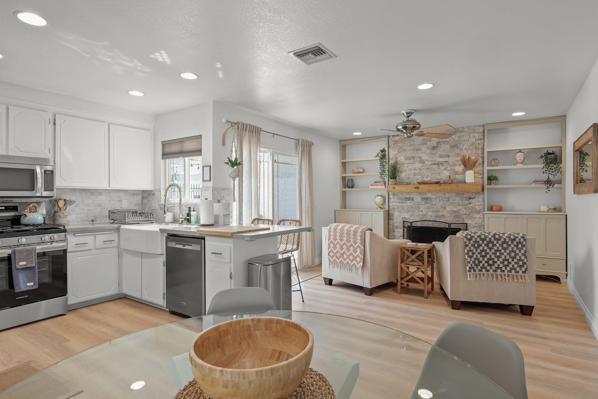 Viaja por una calle ecuestre hasta una casa de huéspedes aislada en una propiedad de 2,5 acres. ¡Un moderno y rústico retiro de 1 dormitorio y 1 baño que te atrae y te saca! Deja que el aire libre alimente tu diversión y escapada relajante. ¡Disfruta de impresionantes vistas del atardecer junto al fuego o interactúa con caballos, cabras y pollos! Despiértate con paz y tranquilidad con caballos pastando a pocos pasos de tu puerta. En el interior encontrarás las comodidades de un hogar combinadas con suaves grises y madera reciclada. Ya sea dentro o fuera, quedarás cautivado por este refugio de nueva construcción.