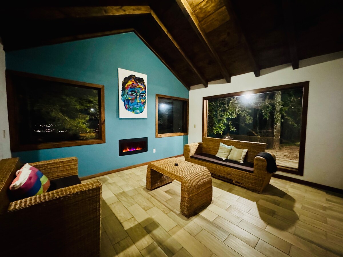 Escápate a esta cabaña rodeada de pinos, ideal para descansar y desconectar sin alejarte de San Cristóbal. Disfruta ventanales luminosos, terraza con vista al bosque y una chimenea eléctrica de ornato ( simula efectos de chiminea ambiental y calor ligero temporal ) para noches acogedoras. Un espacio amplio y privado, perfecto para parejas, familias o grupos pequeños que buscan tranquilidad y una auténtica experiencia de montaña.