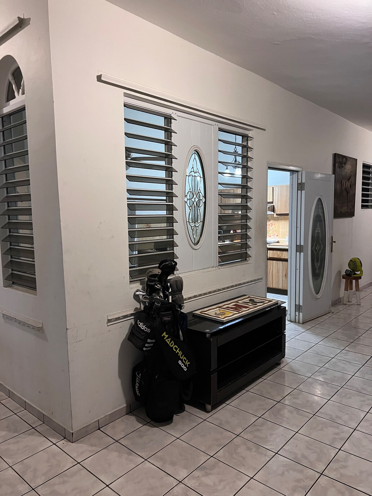residencia ubicada en aguadilla cerca de playa crash boat a 5 min d aeropuerto y muchos restaurante cuenta con laundry lavadora secadora aire en la sala y todo los dormitorio cama king y tv 65 Segundo dormitorio con cama full y tercer dormitorio litera con cuna marquesina amplia para 2 auto y puerta de garaje verjada vuelta redonda cocina equipada cuenta con wifi y sistema d alexa piscina, bbq mesa de masaje totalmente privada lugar tranquilo y ascecible a rest playas supermercado ect.
