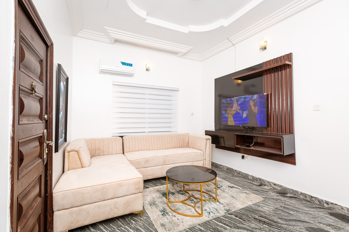 Comfort Home in a secured environment with 24/7 camera and security. The apartment is situated in a very quiet environment and furnished with essential needs i.e. cooking utilities, 24hrs electricity power. This apartment is well suited for individual, couple or family stay. Extremely comfortable with onsite staff and security.