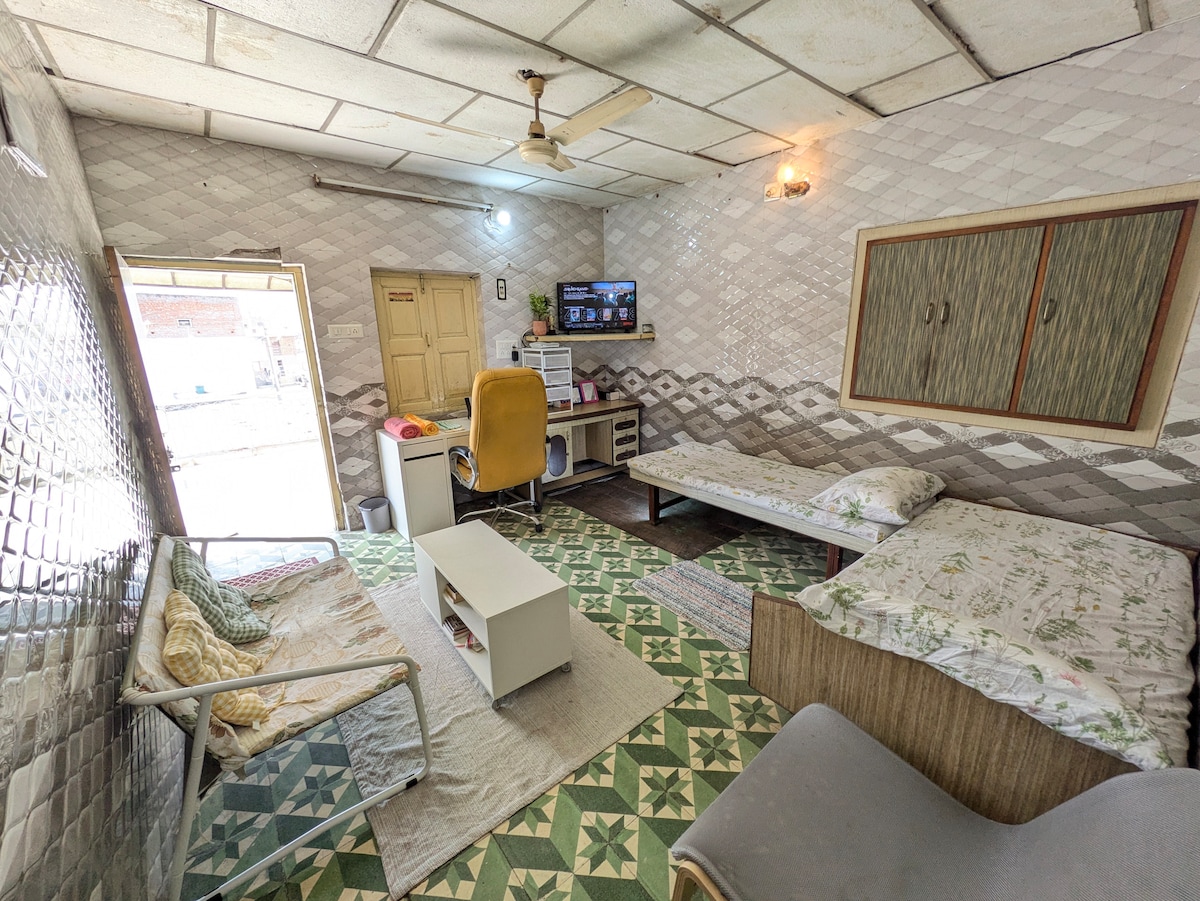 🛕🏡🚜 Nestled in the heart of BHAT (Sarkhej Dholka Road) village, our home is surrounded by a friendly neighborhood 🏘️ and a serene temple 🕉️, offering a true slice of village life. Located on the first floor, it blends rustic charm 🪵 with modern touches 🏡. My family lives on the ground floor, ensuring a warm, welcoming stay. Guests can access a peaceful backyard 🌿 and a terrace 🌌 with optional outdoor seating, perfect for a tranquil retreat.