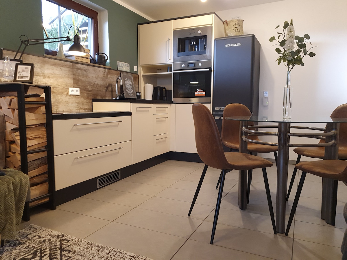 Moderno y espacioso apartamento para 2-4 personas, en la tranquila localidad de Langenfeld (Eifel). -Buen acceso a la autopista (A61) -Cerca del circuito de Nürburgring (10 km) - Varias rutas de ensueño para hacer senderismo -Parques naturales y remontes en las inmediaciones -Mina de visitantes cerca de senderismo -Lago Laacher (18 km) -Restaurantes en el pueblo y en las inmediaciones -Instituto Budista (Kamala Shila) Amplio equipamiento para niños (cuna, silla, cochecito) Visitantes y motociclistas del Nürburgring bienvenidos