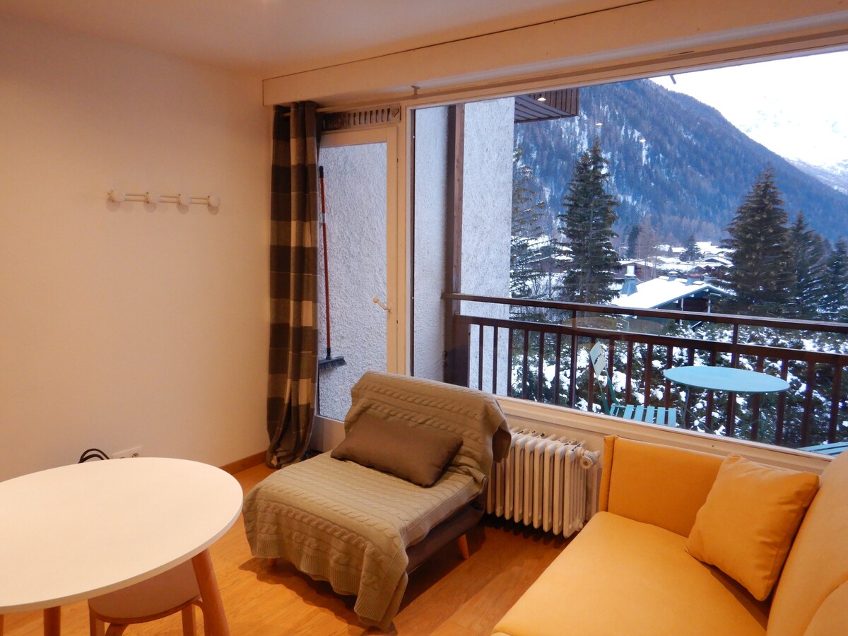 Estudio con vistas a Mt Blanc, tranquilo, a 5 minutos a pie del centro