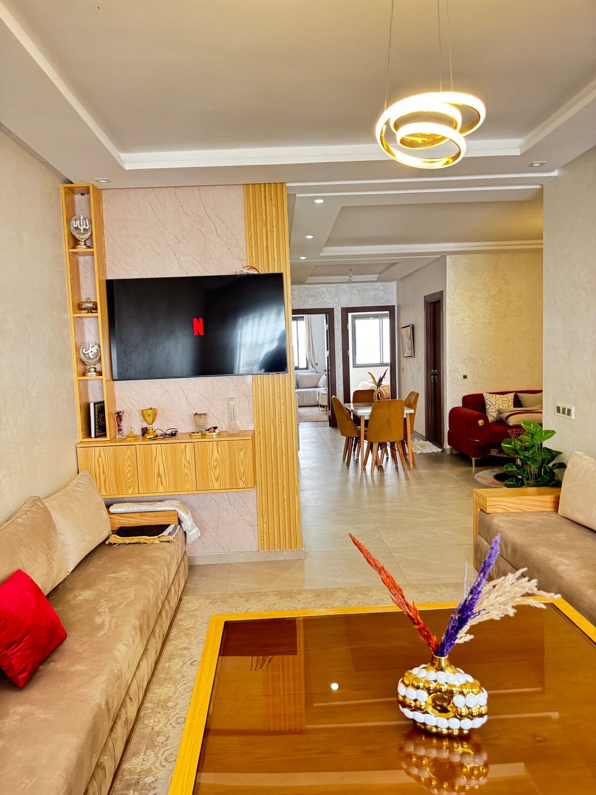 I present to you my elegant house, ideal for families or single people who are kind and will take care of the property as if it were their own. We offer a clean, elegant home with good quality and a good price. The only restrictions are that we do not accept guests using our apartment for parties or unmarried Moroccan couples, If you're looking for something close to the center, near the beach, an elegant place, a quiet, upscale area, you're in the perfect place. AndI hope you have a good time🤍
