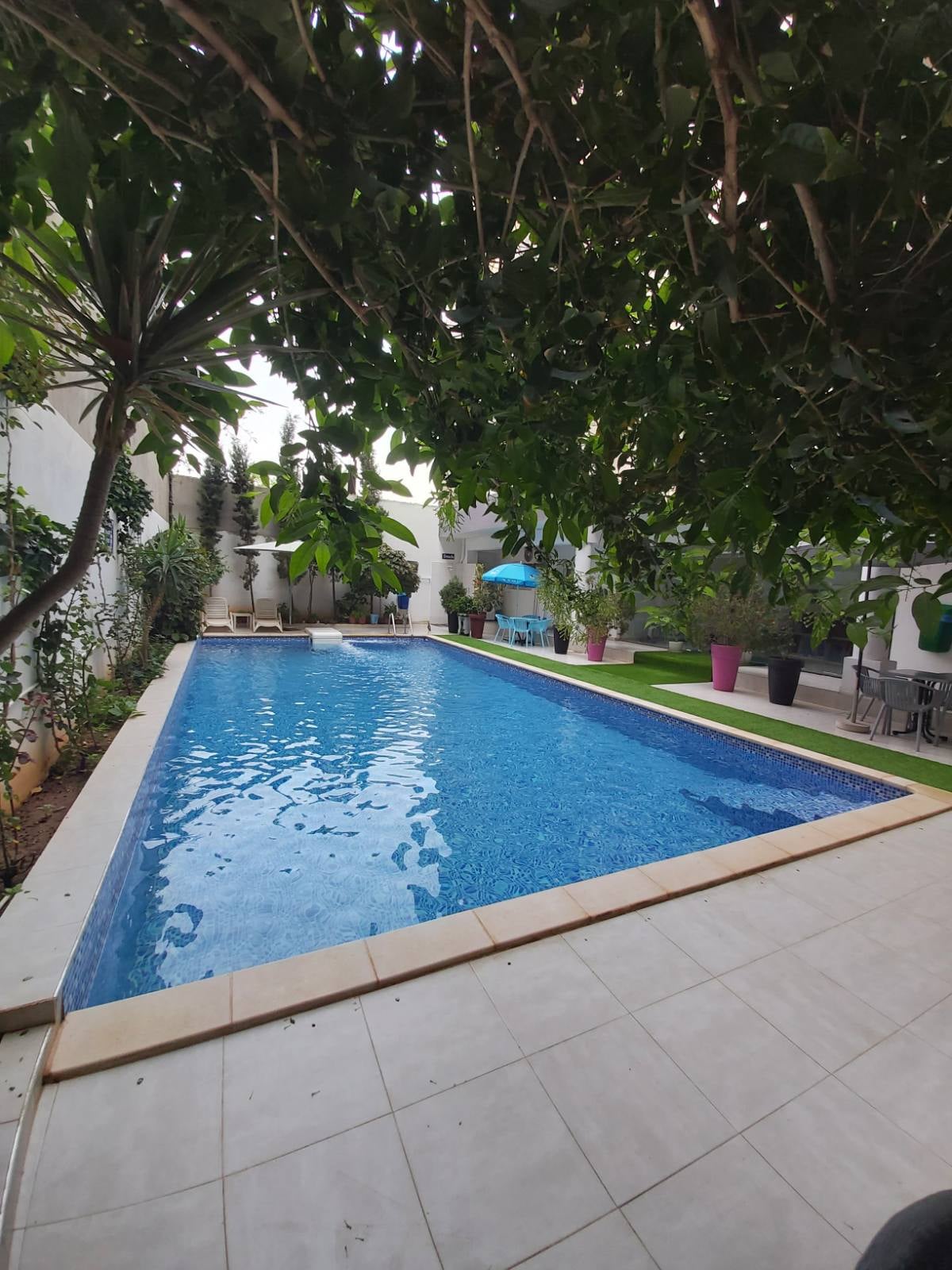 Magnífico apartamento de lujo muy bien situado, con dos dormitorios y una cocina abierta a una sala de estar muy luminosa con una decoración elegante y depurada. Encontrará todas las comodidades modernas que harán que su estancia sea inolvidable. El agua está disponible las 24 horas gracias a nuestro pozo. Situado en una calle tranquila en el barrio de Cité Petit, conocido por su gran bulevar lleno de tiendas, cafés, restaurantes y asadores. El transporte público se encuentra a 200 m del apartamento.