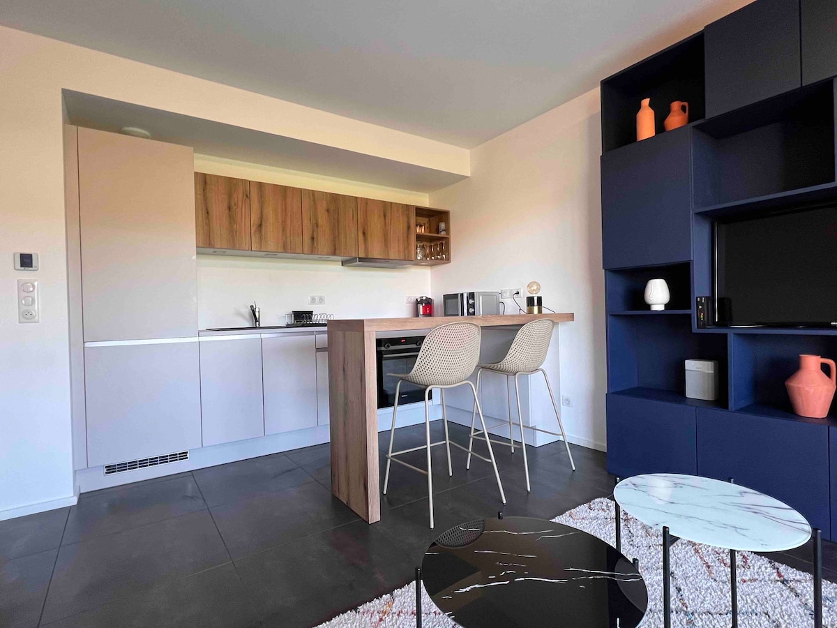 Se trata de un estudio con una gran terraza a 5 minutos del centro de la ciudad en una residencia muy reciente; está equipado con una hermosa cocina y un hermoso baño con ducha a ras de suelo. La decoración es moderna y elegante; está cerca de todos los servicios y se encuentra en una zona tranquila en el campo.
