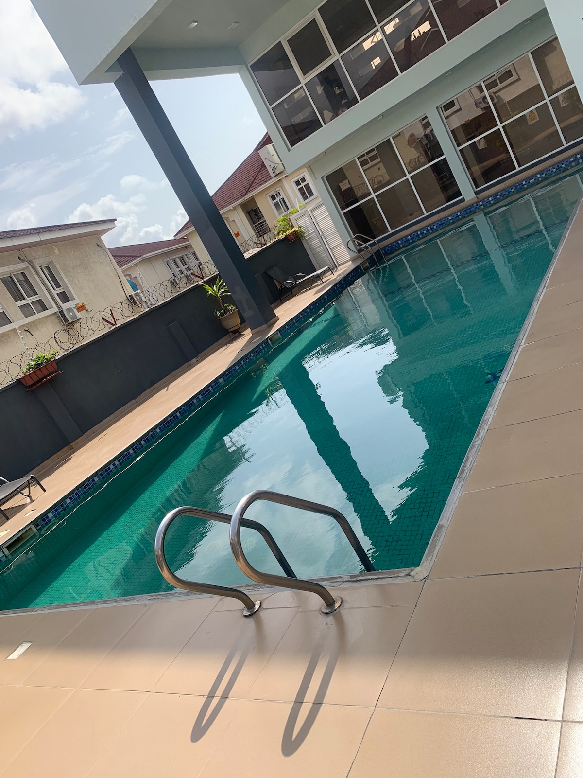 Kick back and relax in this calm, stylish 2 bedroom apartment with quality amenities like: Swimming Pool Gym Elevator Top floor beautiful view PS5 3 Balconies En-suite rooms Fully Equipped Kitchen Washing Machine NETFLIX 24/7 Power supply Clean Water Parking space Wi-Fi House Keeping Gated and secured Estate