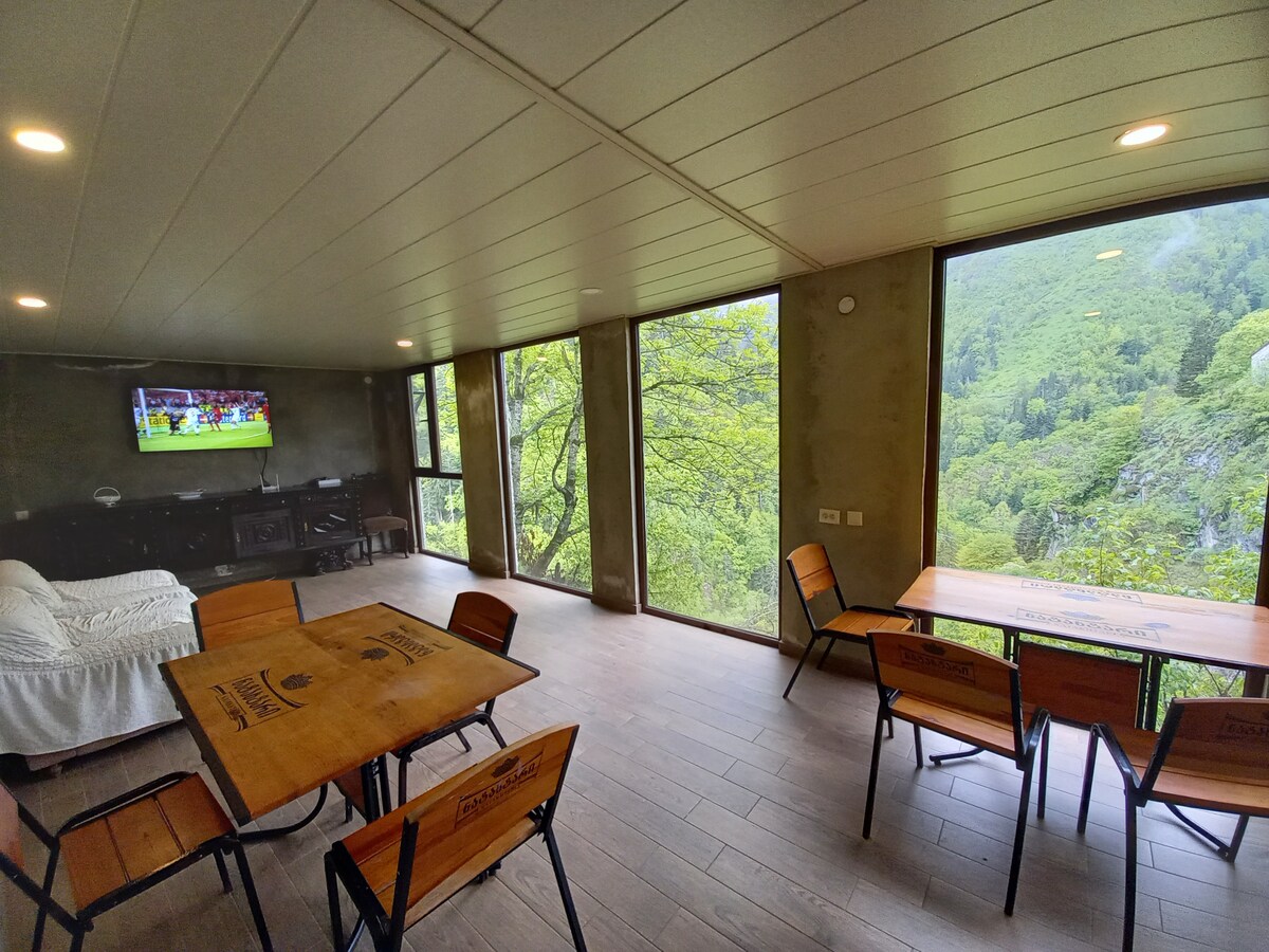 Villa Borjomi ofrece a los visitantes una experiencia diferente de hospitalidad y descanso cómodo. La villa está situada en la meseta de Bojormi, cerca de Borjomi y Bakuriani, en el pueblo montañoso de Sadgeri. Ubicado en la ladera de la montaña frente a la Iglesia de St. George, podrás disfrutar de excelentes vistas desde nuestra terraza abierta y cerrada, con vistas desde la cima de los pintorescos paisajes :bosques, montañas, río y iglesia medieval. Todo el grupo estará cómodo en este espacio único.