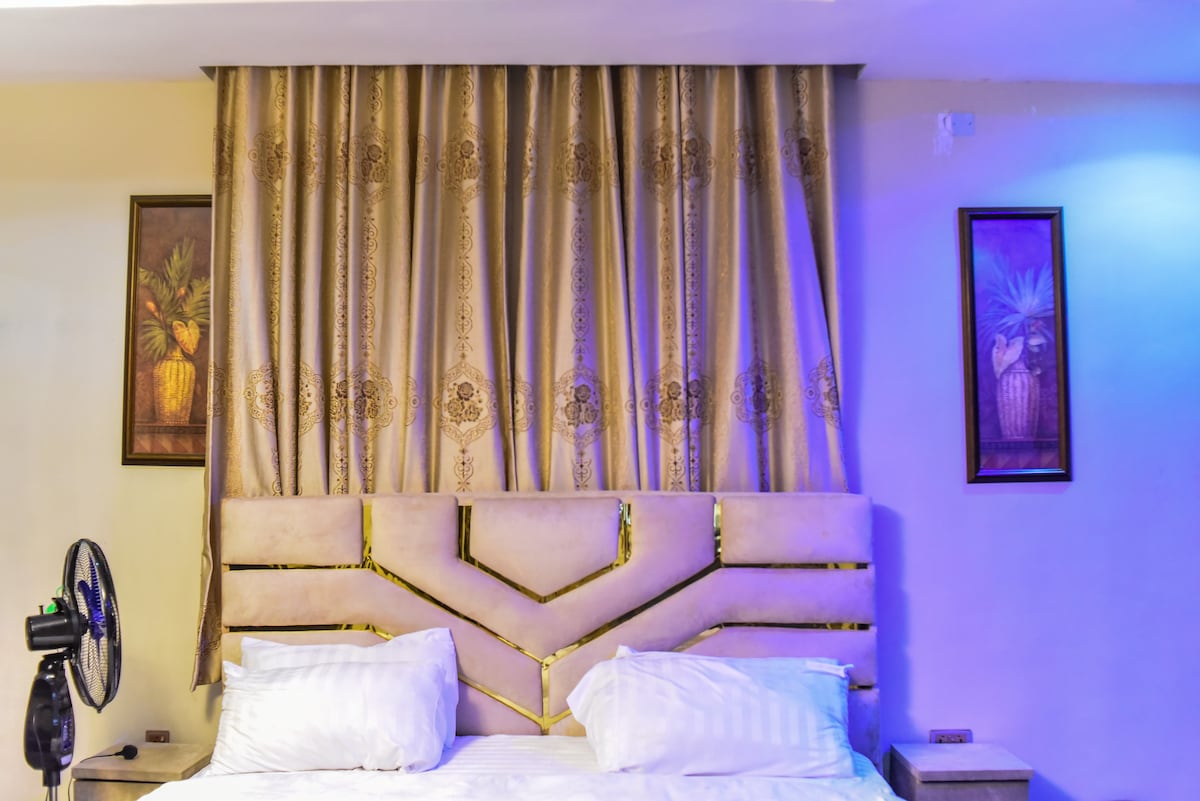 Kick back and relax in this peaceful, stylish Premier Suite at Skye Palace in Akure. Enjoy cozy elegance with a plush bed, refined kitchen, and tasteful local décor with local flair. This serene space offers a fully equipped kitchen, high-speed Wi-Fi, 24/7 power, and secure access, an outdoor event area—perfect for business trips, romantic getaways, or a peaceful stay in Akure, Ondo State, Nigeria. Your comfort, privacy, and convenience are our priority at Skye Palace Apartment.
