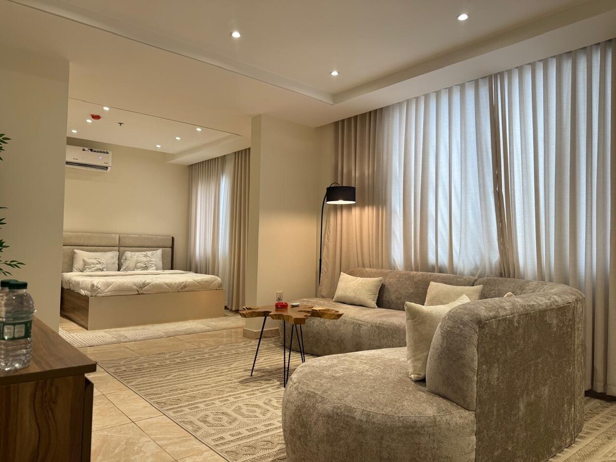 Descubre la belleza de la comodidad y la elegancia en este apartamento situado en el corazón del barrio de Al Olaya en Al Khobar. El apartamento cuenta con un cómodo dormitorio y un cómodo salón, donde puedes relajarte frente a un televisor inteligente de 65 pulgadas, lo que garantiza una experiencia de entretenimiento excepcional. Con una conexión rápida a internet, puedes mantenerte en contacto con los tuyos o trabajar de forma eficiente sin interrupciones. El diseño moderno y el ambiente cálido del apartamento lo convierten en el refugio perfecto después de un día de exploración.