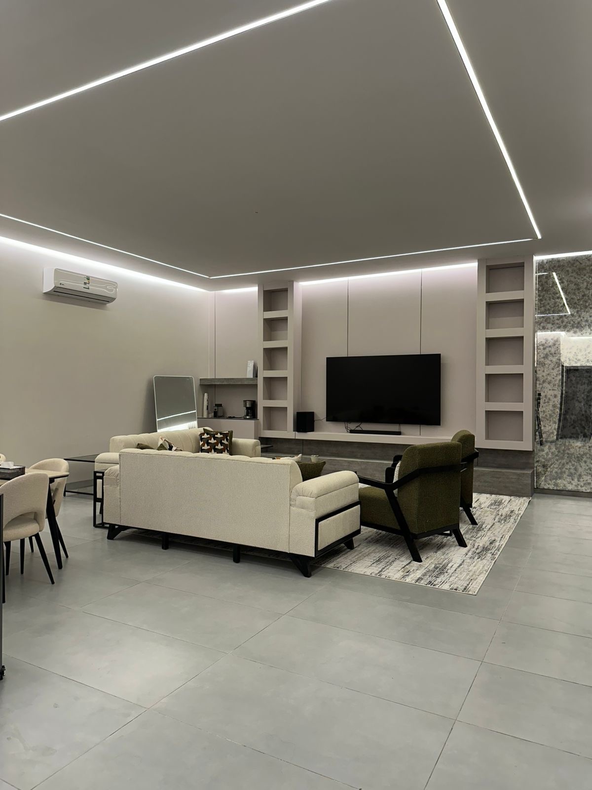 Habitación y salón cómodos y tranquilos con entrada independiente para que pases los momentos más bonitos Se encuentra en el segundo piso y hay un ascensor. El edificio dispone de 3 entradas, en la calle principal, en el lateral y en la parte trasera. El edificio dispone de aparcamiento privado. Se encuentra en una ubicación privilegiada cerca de todos los servicios, a 4 minutos de la calle Al-Bukhari y la carretera Othman y a 1 minuto del complejo Half Million. Está a 23 minutos del aeropuerto. Y porque tu comodidad y su estado de ánimo nos importan, se proporcionan herramientas de café V60 además de bolsitas de té. Se proporciona servicio de Internet 5G, suscripción a Netflix y pantalla inteligente de 65 pulgadas Te deseo una estancia tranquila y feliz.