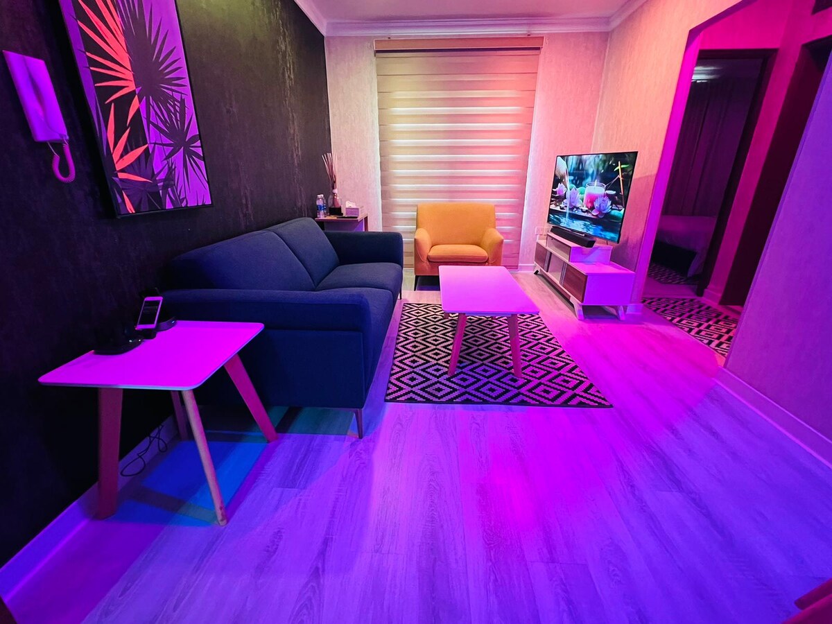 ** lee antes DE reservar ** Un apartamento nuevo y acogedor con muebles de marca, un amplio salón, un dormitorio principal, dos lujosos baños, una cocina totalmente equipada, un piso alto, conexión wifi gratuita; en pocas palabras, está diseñado para una vida flexible «como en casa». Ten en cuenta que a las parejas locales que estén dispuestas a alojarse en el apartamento se les pide amablemente que presenten su certificado de matrimonio.