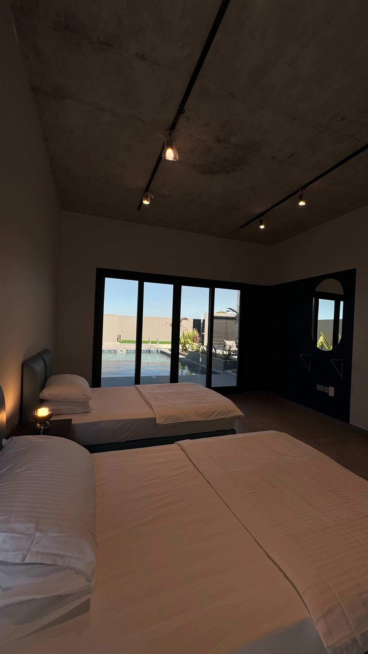 Un complejo hotelero dedicado a las parejas para vivir un ambiente único diseñado en un estilo único y moderno para adaptarse a tu relajación en diferentes ambientes. Cuenta con piscina privada con sala de estar de doble altura y vista a la piscina y sala de estar desde el dormitorio principal. La piscina tiene control de temperatura. Lugar tranquilo y seguro. A 40 km del aeropuerto de Mascate. A 35 minutos del aeropuerto.