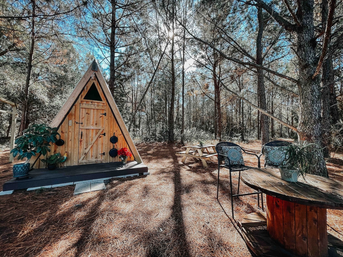 Bienvenido a nuestra cabaña alpina, ubicada en el encantador Old Florida Woodlands. Se completa con dos cunas, una pared/toldo con bisagras, chimenea, sillones, una hamaca y una mesa de picnic. Desde este suave espacio con necesidades de pino, disfruta de la vista del estanque, explora el jardín de temporada, alimenta a los peces y conoce a nuestros perros de granja. Principalmente, disfruta de la facilidad y vuelve a conectar la naturaleza. Debido a la grave sequía de este año, el estanque está actualmente muy bajo. Sin embargo, todavía puedes ver koi, lubina y brim. 🙏🏼