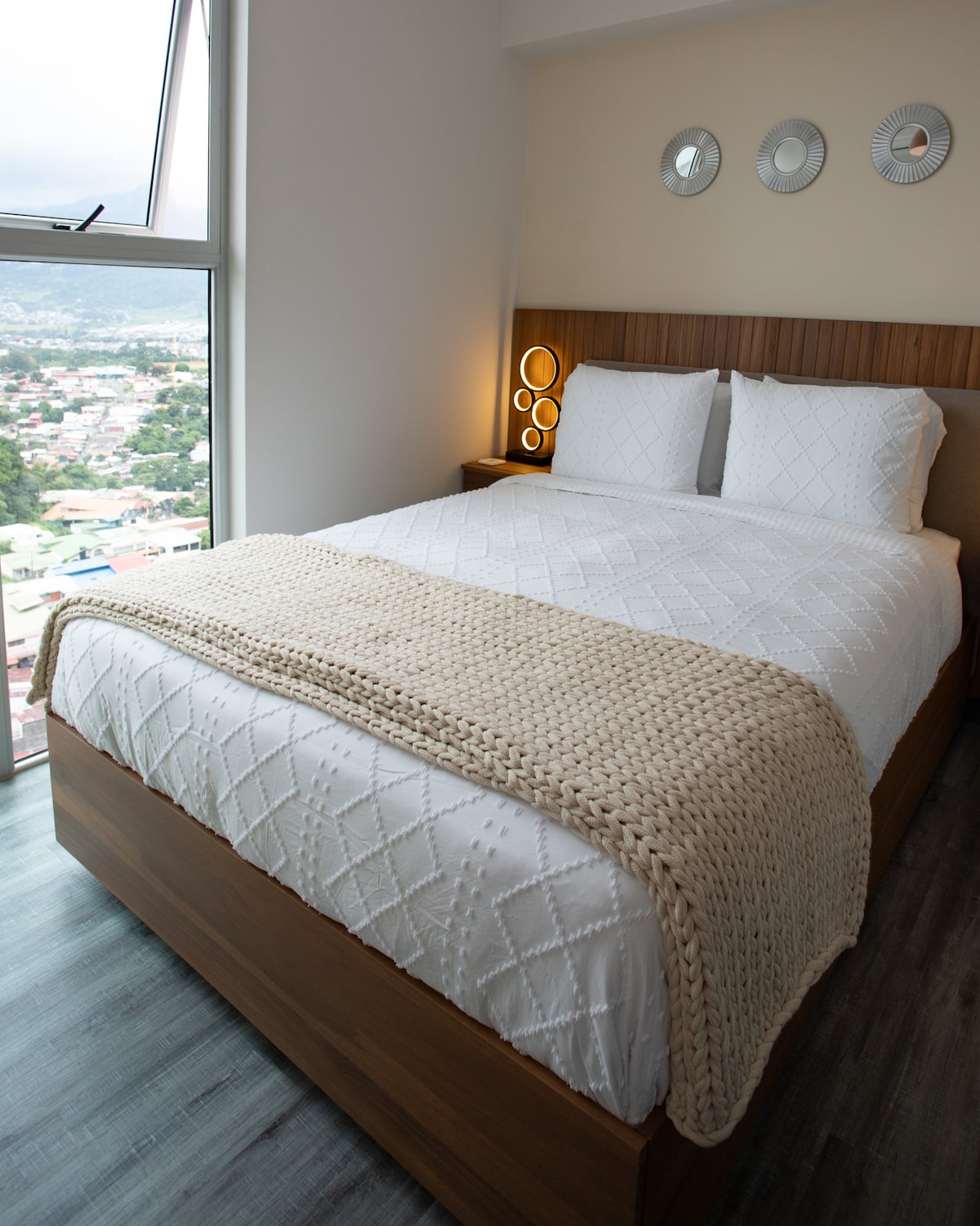 Cama king premium, AC, wifi, Smart TV 55", cocina equipada, cerradura digital y acceso a coworking. Parqueo gratuito dentro del edificio. Ubicado en La Sabana, zona segura y céntrica. Este loft restaurado forma parte de un edificio patrimonial frente al Parque de la Nacionalidad Costarricense. Esta creación del nieto del artesano Eloy Alfaro, combina legado tico con confort moderno. Todo está pensado para que descanses y trabajes con comodidad. Hospédate en una pieza de historia costarricense.