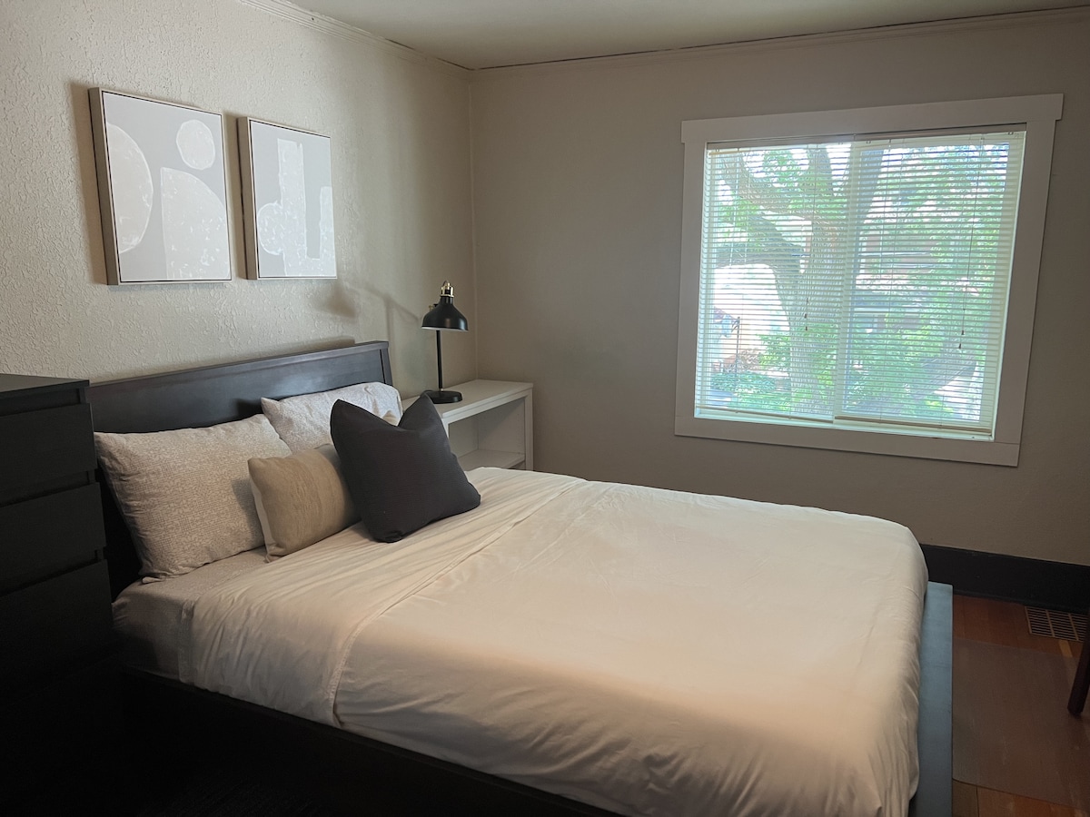 Este alojamiento se encuentra cerca del corazón de Rochester, a pocas manzanas del St. Mary, muy tranquilo, acogedor y privado. Una unidad de nivel inferior en una casa antigua, con muchas ventanas y luz, e incluye un precioso dormitorio con chimenea, una cocina completa, una sala de lectura y un baño limpio y actualizado. Esta casa también está cerca del centro comercial Apache, el Canadian Honker y otros restaurantes locales, cafeterías y el sistema de senderos para caminar/montar en bicicleta. También hay wifi, lavandería y aparcamiento en el lugar.