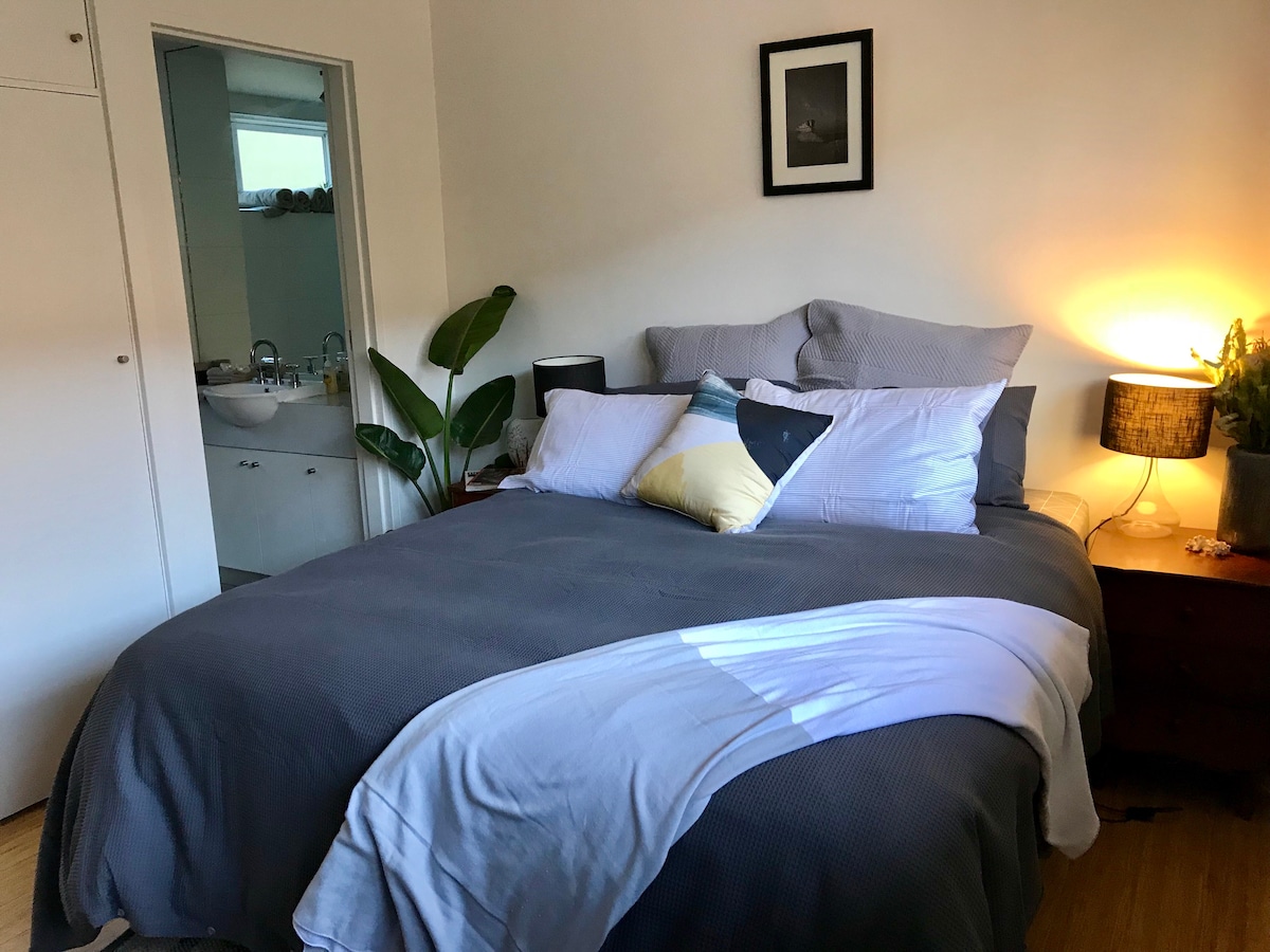Peaceful loft‑style retreat in the heart of Albert Park. Large open‑plan space with polished floors, vintage charm and modern comforts. Relax in the king‑sized brass bed or unwind on leather sofas. Enjoy Wi‑Fi, TV including Netflix, air‑con, and a compact kitchenette. Private guests-only entrance. Unrestricted on-street parking using host's permit Parks, beach, and local dining all within a short stroll and a tram stop to Melbourne’s CBD only 70m away.