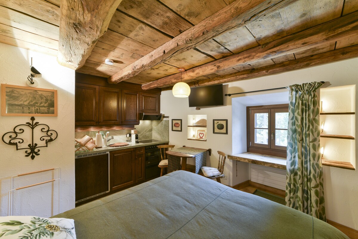 Hermoso apartamento en una casa con 3 apartamentos, luminoso,con wifi incluido. Cerca de tiendas y estaciones de esquí. El balcón, accesible desde la sala de estar, tiene una vista muy agradable del césped hacia Maloja. Sala de estar con techo alto con vigas expuestas, chimenea, sofá y comedor. Habitación grande con cama matrimonial. Dormitorio pequeño con litera y cama individual. Baño con bañera. Garaje incluido en el precio. Lavador y trastero de esquí en el sótano.