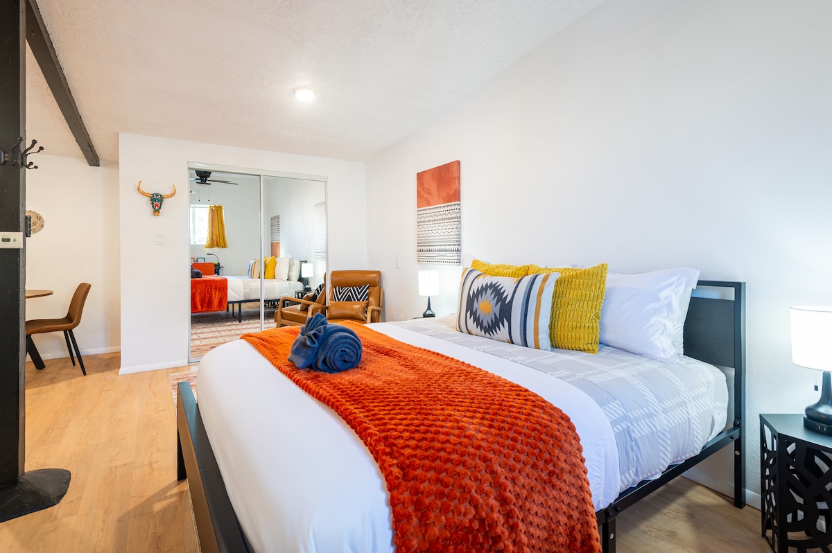 NO CLEANING OR HOST ADDED FEES. Our casita is a small, relaxing haven minutes from everything Albuquerque has to offer. We’re walking distance to food, shopping, and the Park-n-Ride for State Fair and Balloon Fiesta! Its private, and has almost everything a traveler might need while still being minimalist and uncluttered. Its bright and clean, ready to make your stay unforgettable.