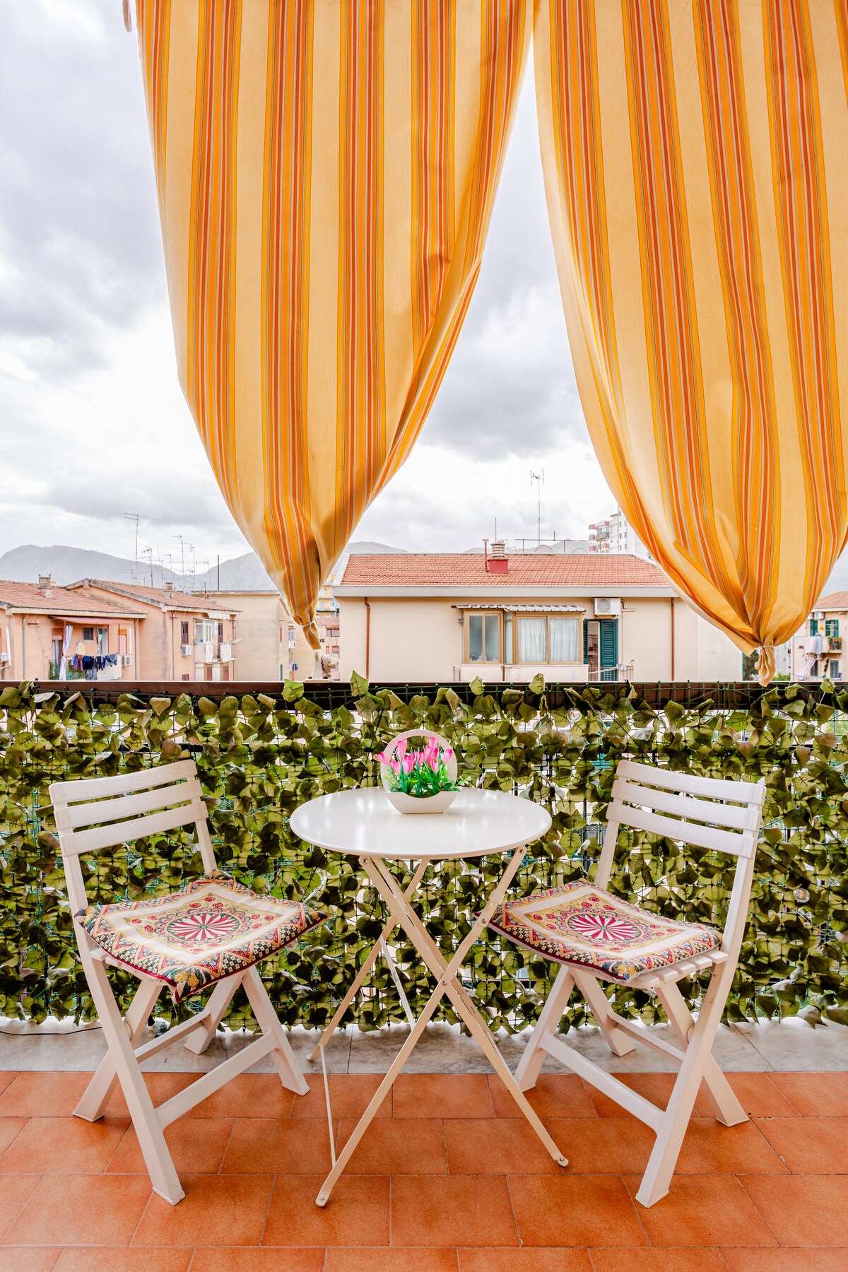 Welcome to Casa Conigliaro, a terraced apartment surrounded by swaying palm trees and the dramatic hills of Sicily. At a 20 minutes drive from Palermo city, it is a green oasis of calm and serenity, offering the luxurity of a swimming pool and a large private terrace with lounge, boarded by impressive vistas and deeply coloured sunsets. It has two comfortable bedrooms decorated with vintage sicilian furniture and a fully equipped kitchen. Beach towels and beach umbrellas are also available.