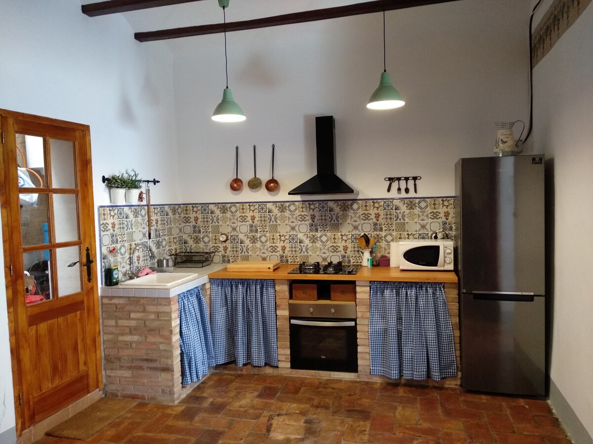 Esta masía, rodeada de montañas y con impresionantes vistas al mar y a las montañas, ofrece una base tranquila para realizar actividades al aire libre. Este alojamiento consta de una casa con dos habitaciones, una doble y otra con dos camas individuales, un salón, una cocina y dos baños con duchas. Al lado hay la casa donde vivo y el otro es una alfarería donde puedes disfrutar de una experiencia de alfarería si lo deseas. A poca distancia en coche hay fantásticas playas y pueblos históricos.