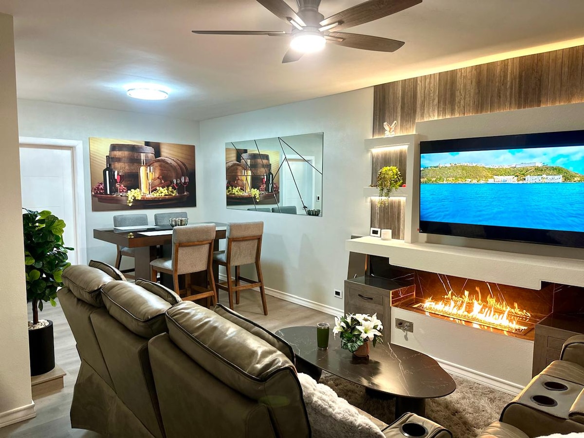 Disfruta de una tranquila estancia en este hermoso, funcional y céntrico condo. Completamente nuevo. Cuenta con internet, TV de 75", 2 habitaciones, 2 baños, cocina completa, y todo lo que necesitas para sentirte como en casa. El balcón es muy espacioso y tiene una vista hermosa.