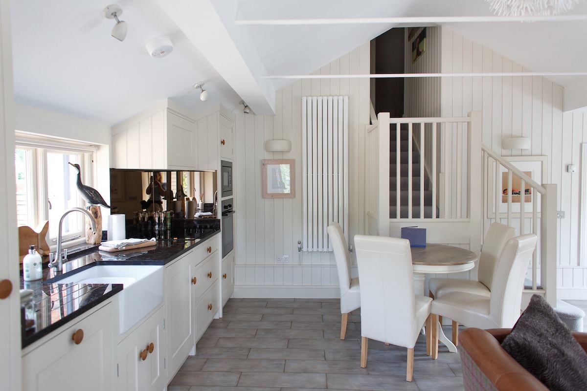 The Stables se encuentra en una hermosa y tranquila parte de Suffolk, en el río Deben, con senderos, natación silvestre, pubs a poca distancia a pie, observación de aves, vistas para artistas y fabulosos carriles para ir en bicicleta. Perfecto para surf de remo y kayak también. The Stables se ha convertido en una acogedora casa de campo con muebles contemporáneos, cocina equipada, dormitorio con cama tamaño king, baño privado, cuarto de ducha, estufa de leña, 2 televisores y wifi, libros y juegos, y cancha de tenis (previo acuerdo).