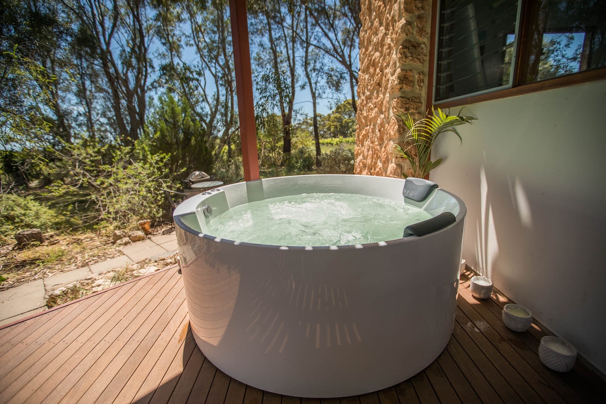 A Place to Relax, Escape & Reconnect Iron & Stone tower by Pritchard Design Amazing Views from every window One Bottle of wine grown with love in our organic vineyards. Sit by the cosy stone fireplace in winter. Gorgeous outdoor bath with jets for 2 to relax in. 23 acres of Kangaroos, echidnas, native birds, owls, koalas. 3 mins to drive on Aldinga Beach 3 kms, Surf at Aldinga Wave Pool 8.5 kms 11 mins (2026) As shown on SA Weekender, Glam Adelaide A romantic stay in South Australia