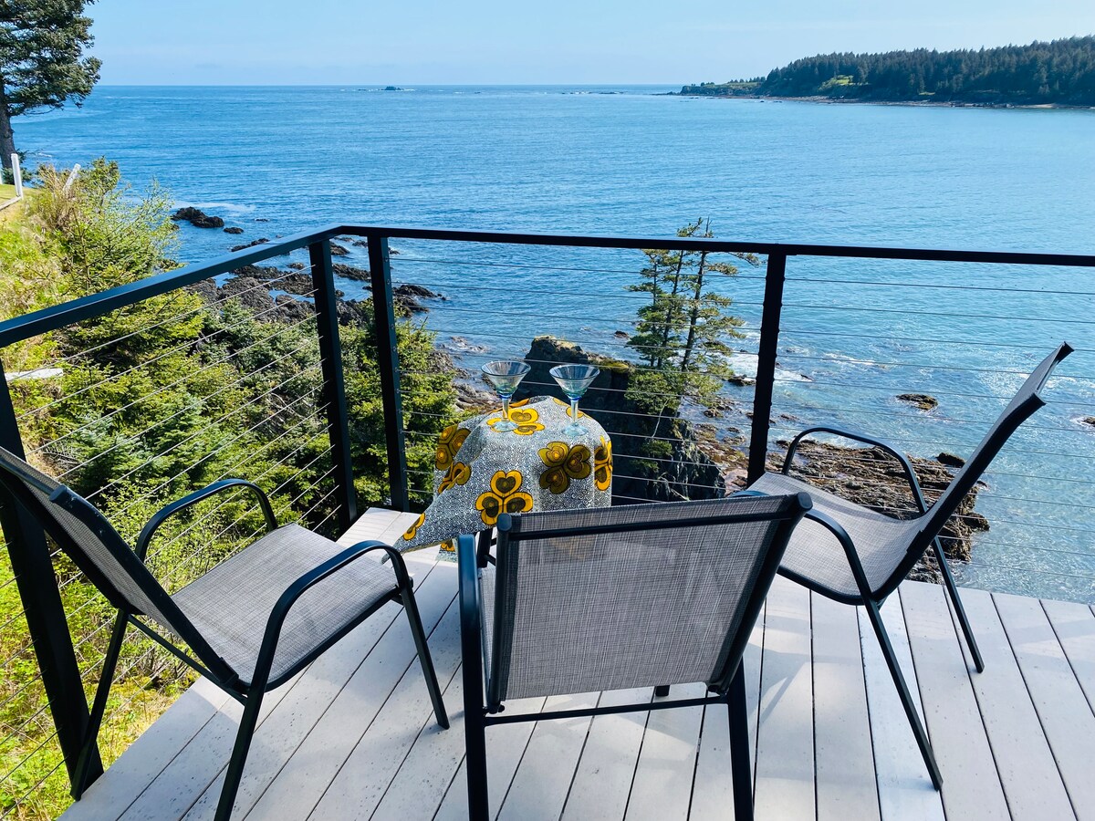 ¡Ven a sentir el rocío del Océano Pacífico! Nuestro apartamento de 2 dormitorios y su espectacular terraza te sitúan casi en la cima del océano. Verás nutrias, frailecillos, águilas calvas y martines pescadores tan cerca que te parecerá que puedes tocarlos. Idealmente situado para la aventura: a solo 5 minutos a pie de los impresionantes senderos de Abercrombie State Park, Island Lake Creek Trail y Mill Bay Beach. Tiendas a menos de 1,6 km.