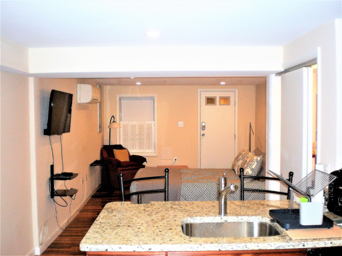 Disfruta de tu propia suite estudio privada con entrada privada y aparcamiento gratuito fuera de la calle en el casco antiguo histórico de Alejandría. La unidad está unida a la parte trasera de la casa principal y tiene 350 pies cuadrados. No se comparte nada. La suite está convenientemente ubicada a más de 15 minutos del aeropuerto DCA y a 6 manzanas de King Street, donde puedes caminar y disfrutar de todas las tiendas, restaurantes y entretenimiento que ofrece el casco antiguo. Esta propiedad también está a poca distancia a pie de Whole Foods y de la estación de metro de King Street.
